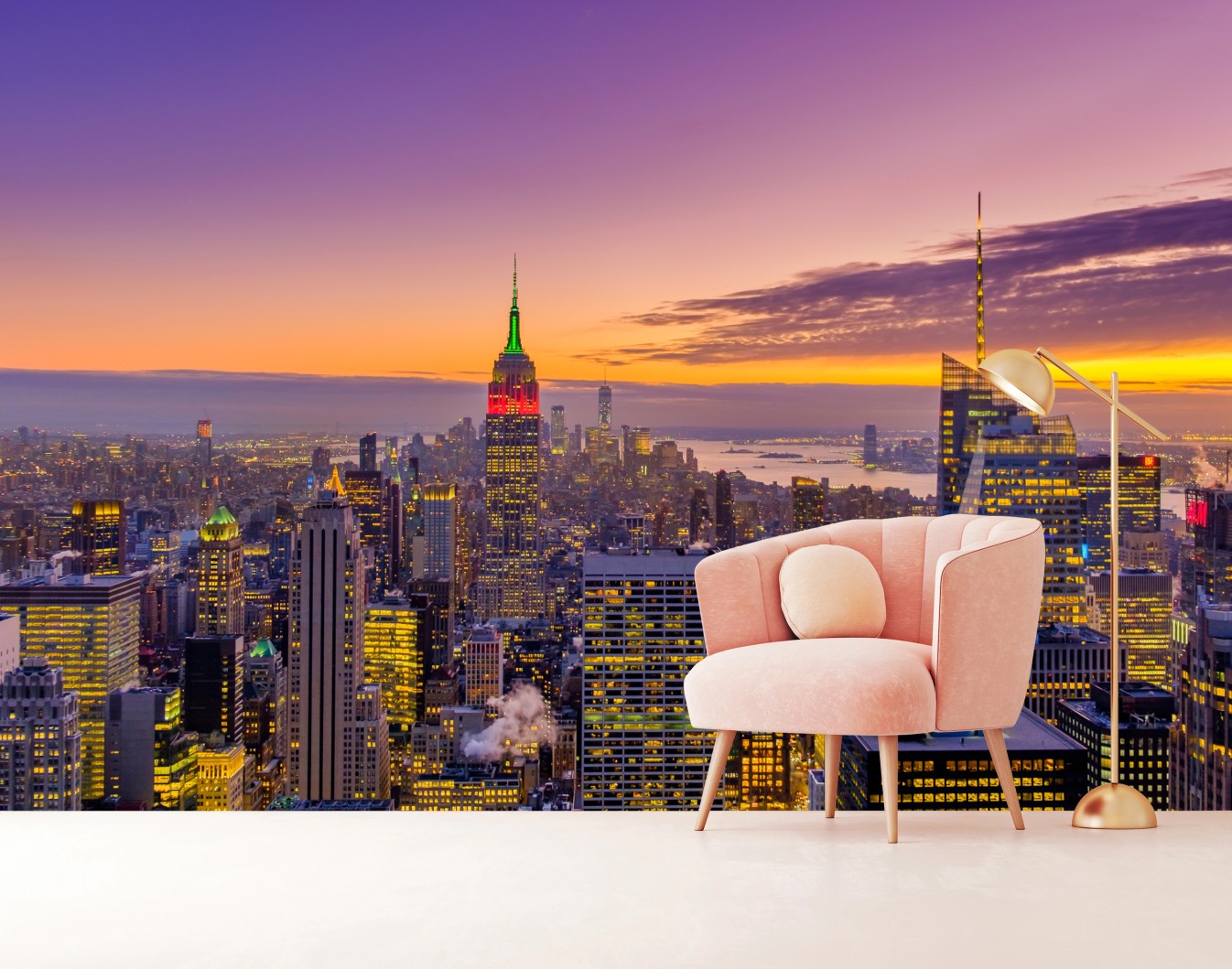Fototapete Lebendige New York skyline bei sonnenuntergang