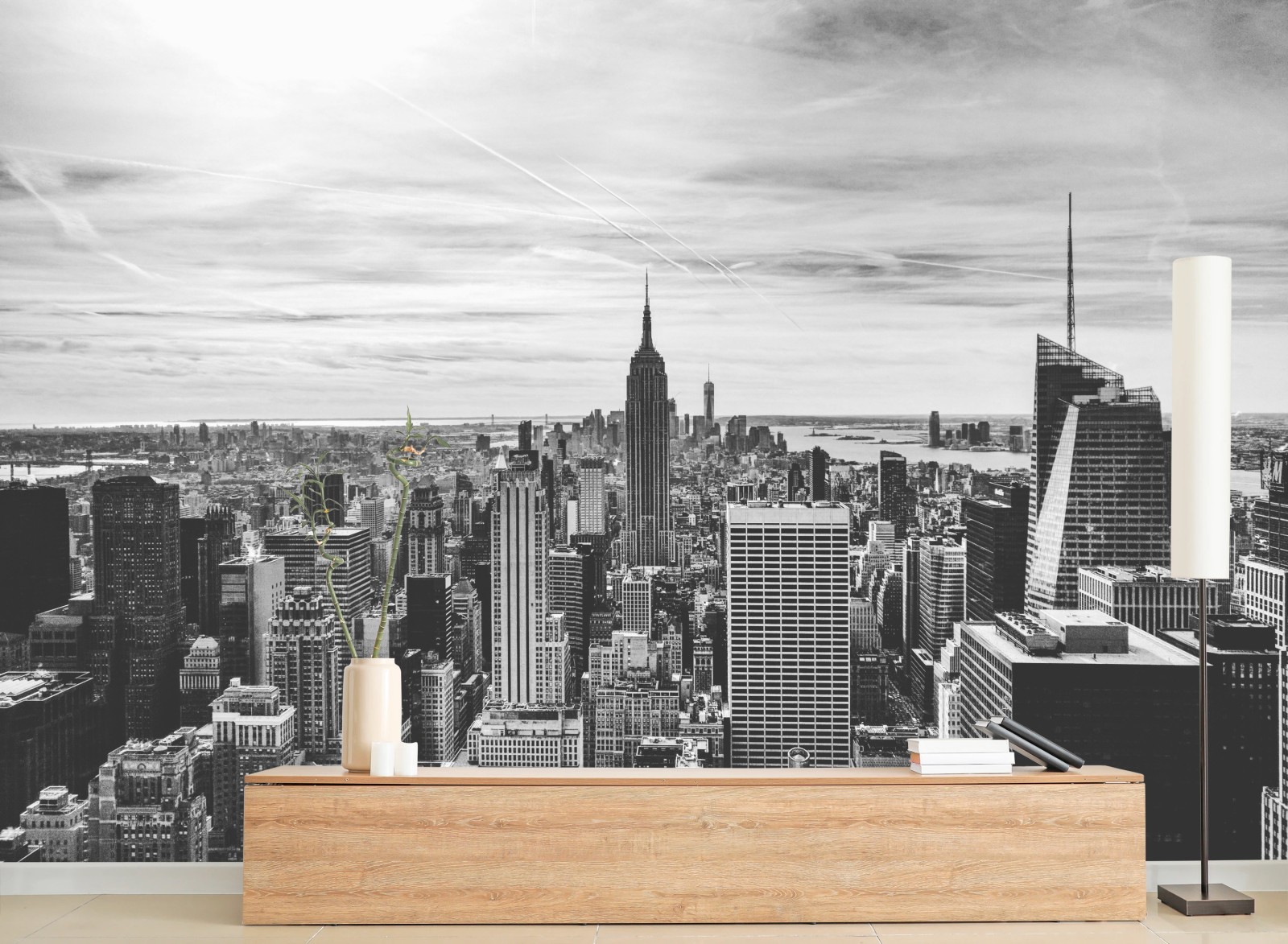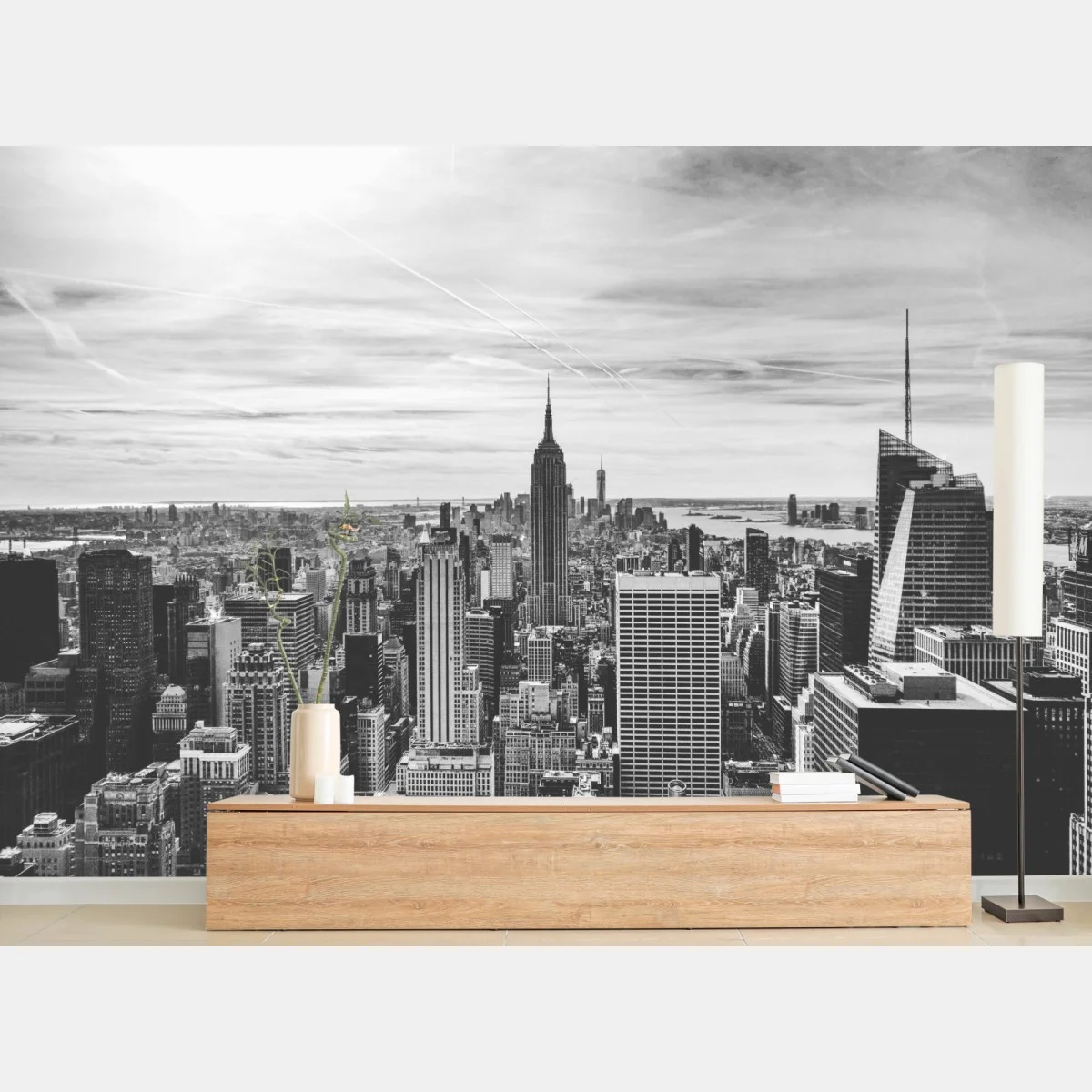 Fototapete Panorama von New York in graustufen