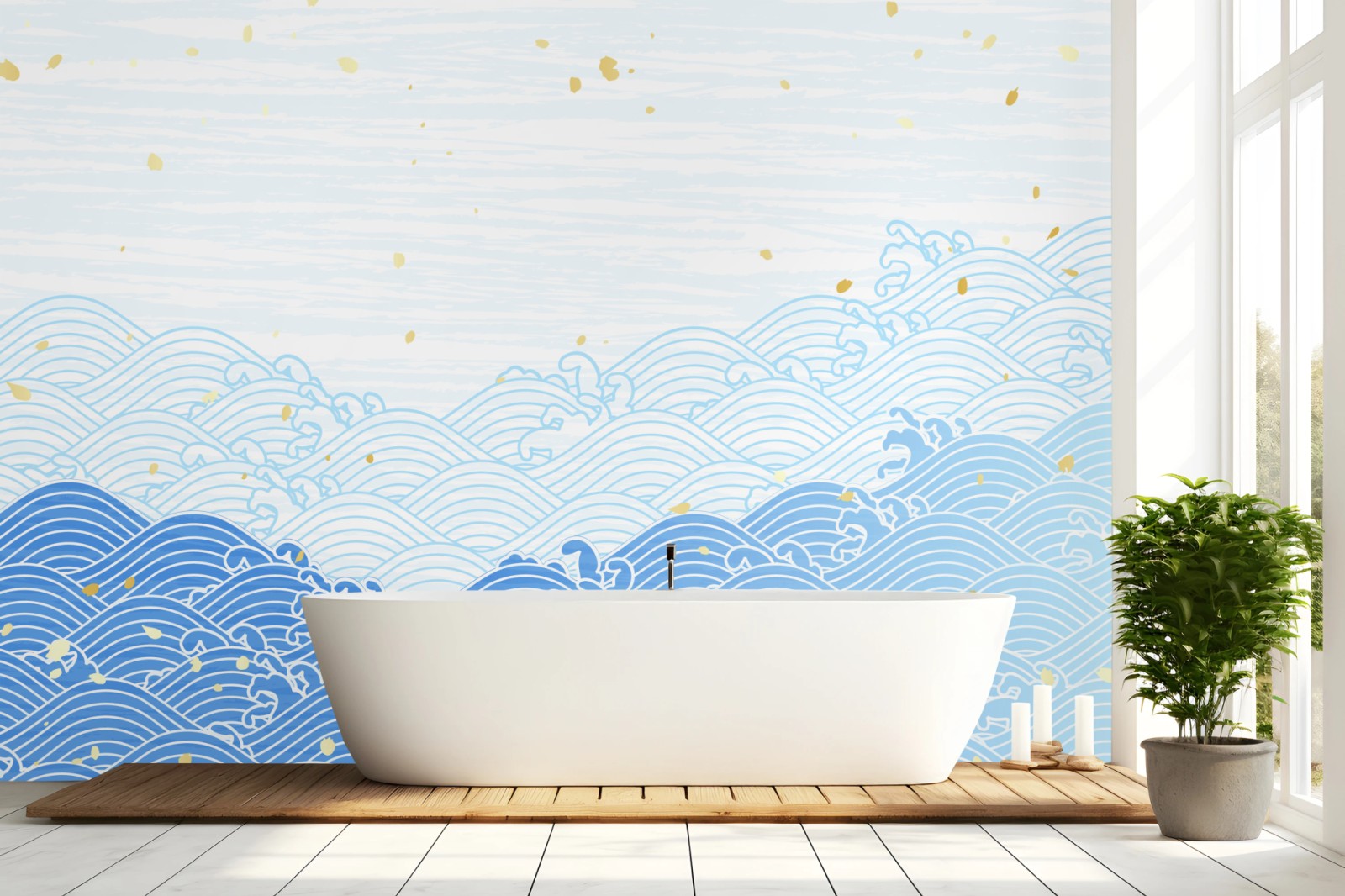 Fototapete Ruhige blaue wellen mit goldakzenten