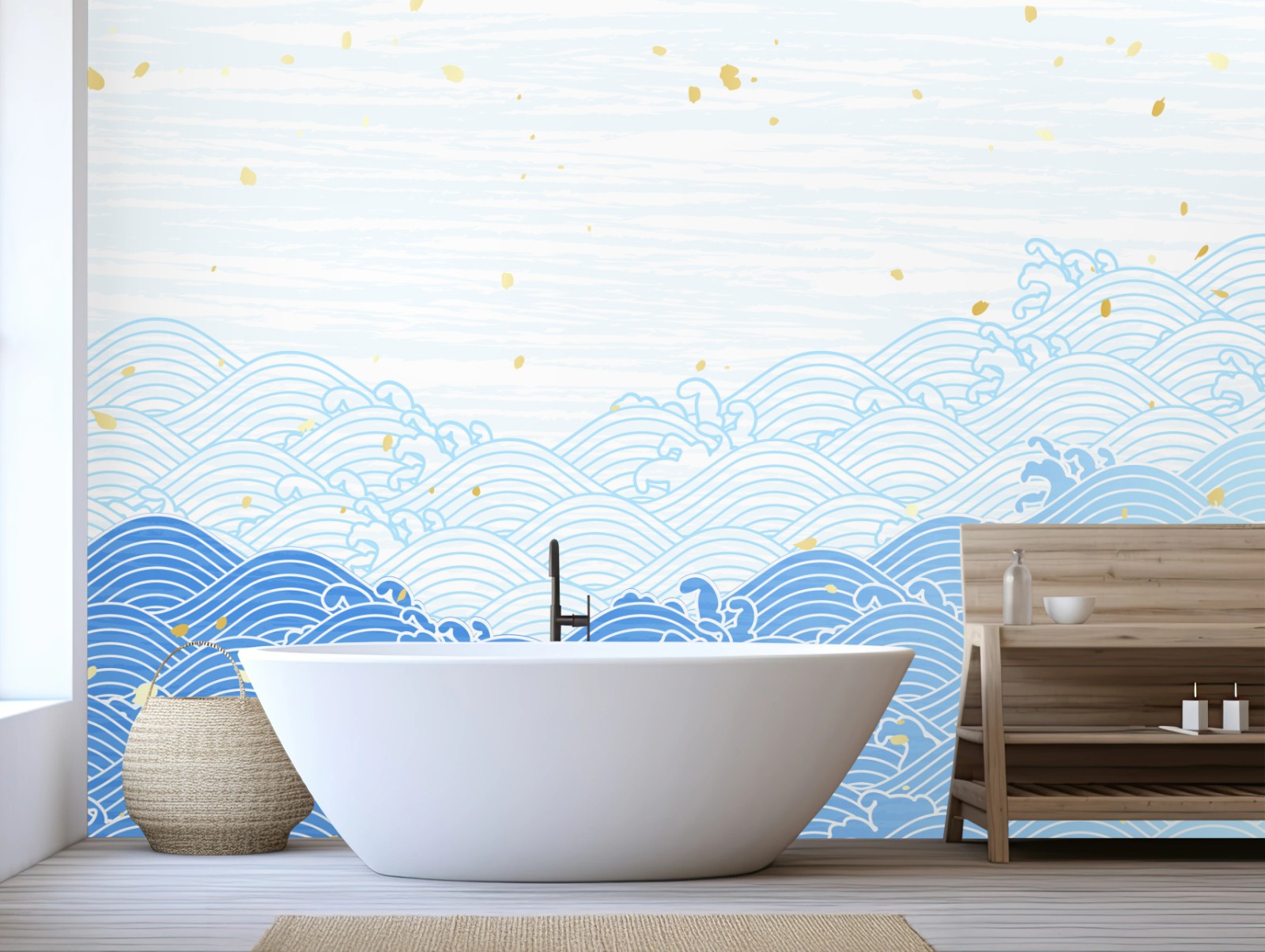 Fototapete Ruhige blaue wellen mit goldakzenten