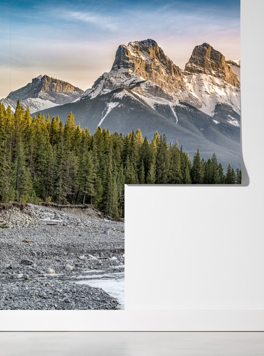 Fototapete majestätische berggipfel und kiefernwald