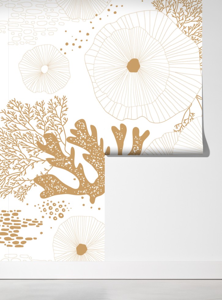 Fototapete zartes goldenes korallenmuster – Wallnifity®