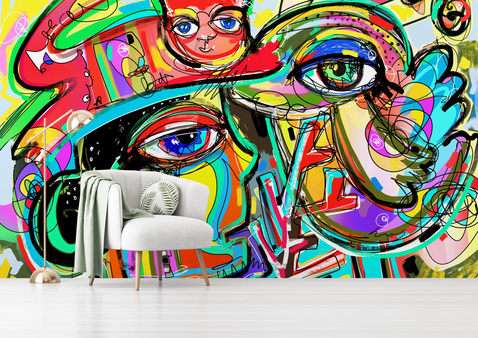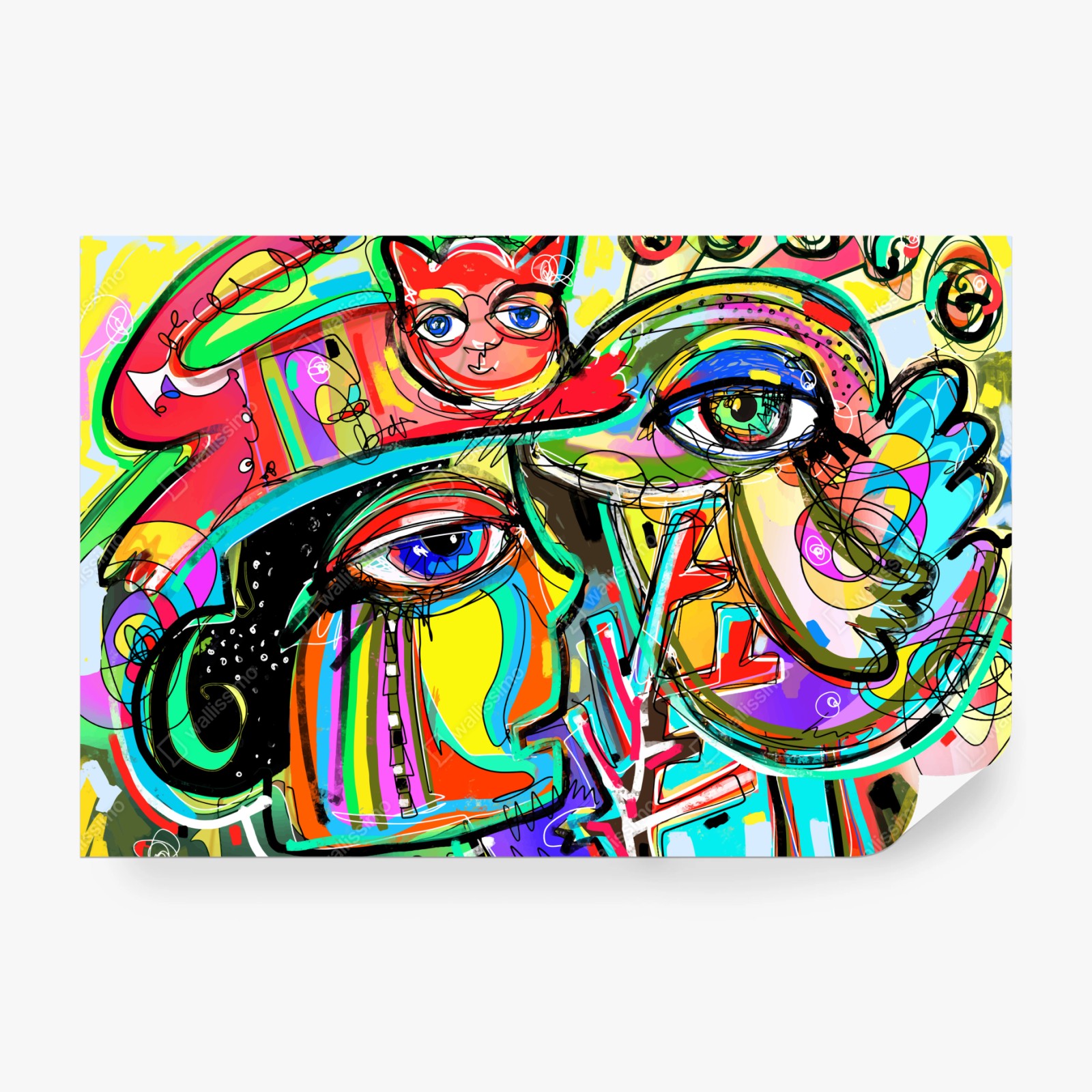 Fototapete Lebendige abstrakte gesichter mit katze und vogel