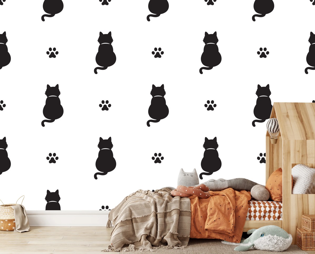 Fototapete Muster mit schwarzen katzensilhouetten