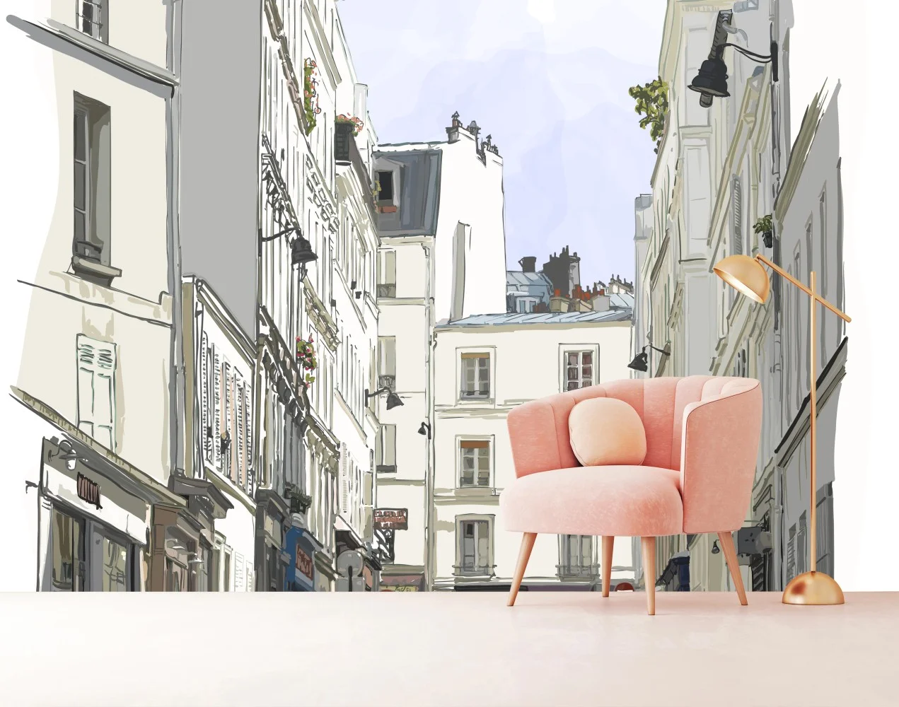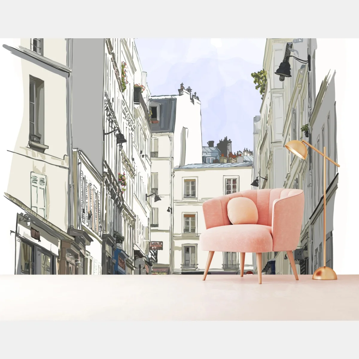 Verleihen Sie Ihrem Raum pariser Flair mit dieser zarten Aquarell-Illustration einer Straße in Montmartre.