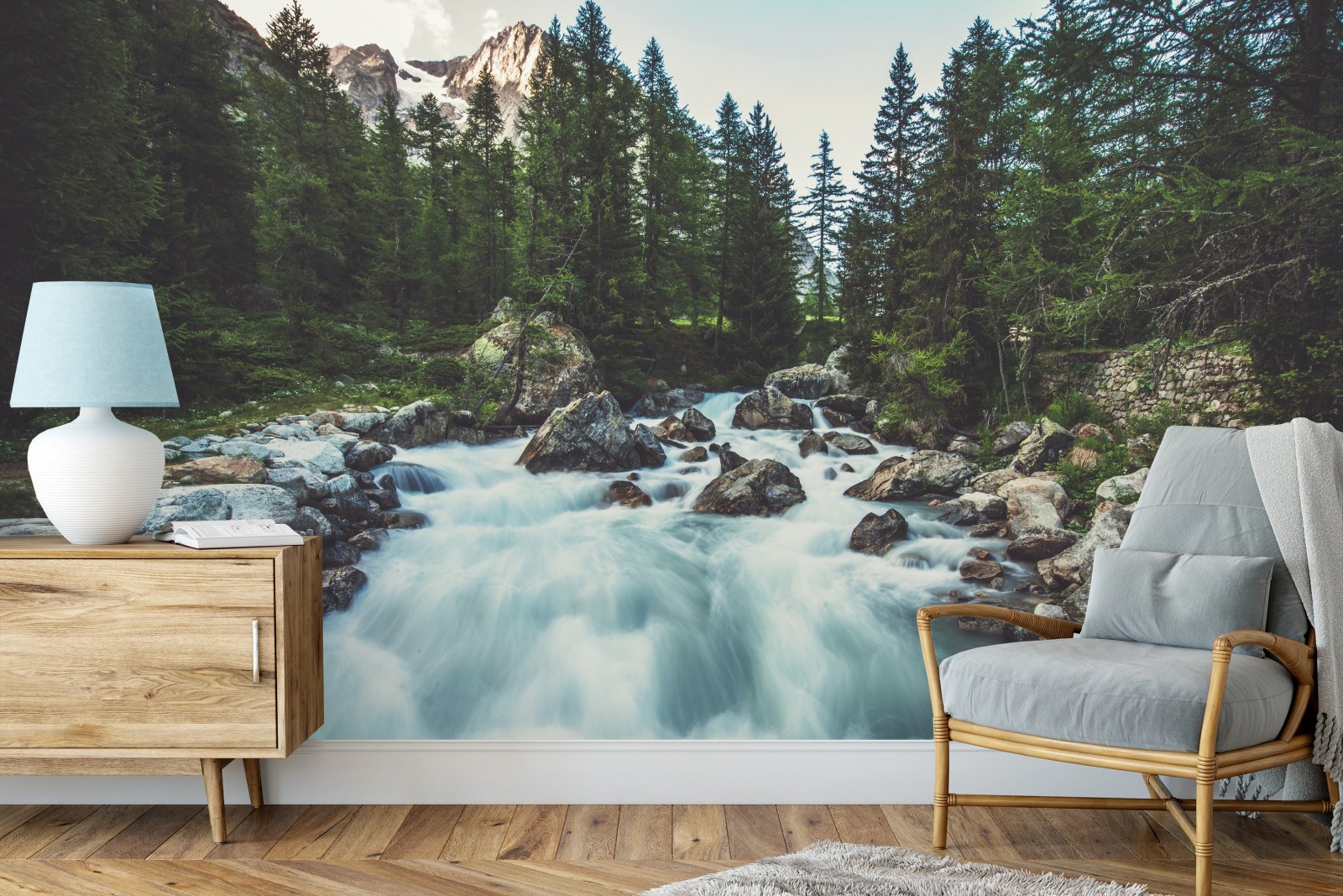 Fototapete Malerischer alpiner fluss im Ferret Valley