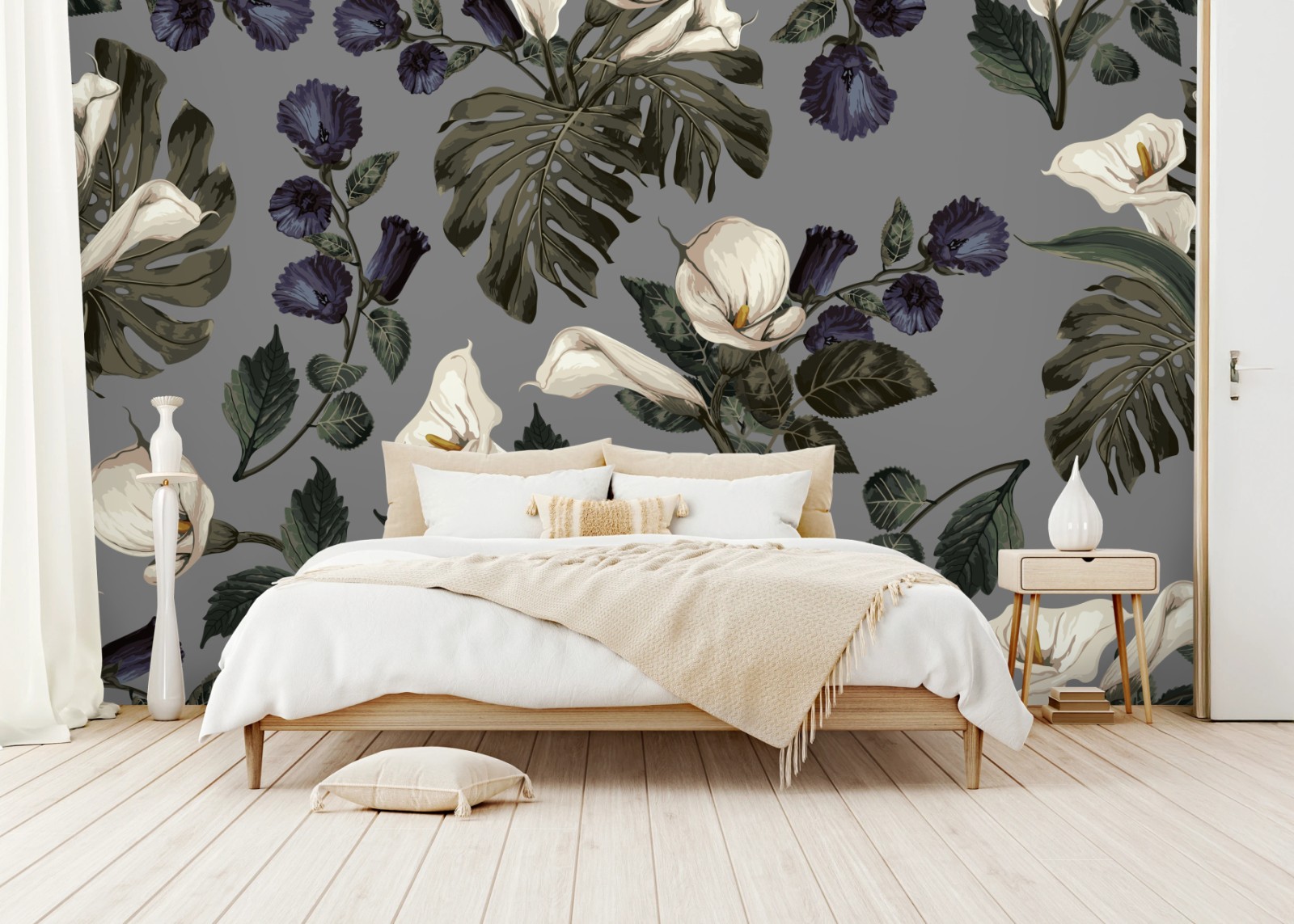 Fototapete Vintage calla blumenmuster auf grauem hintergrund