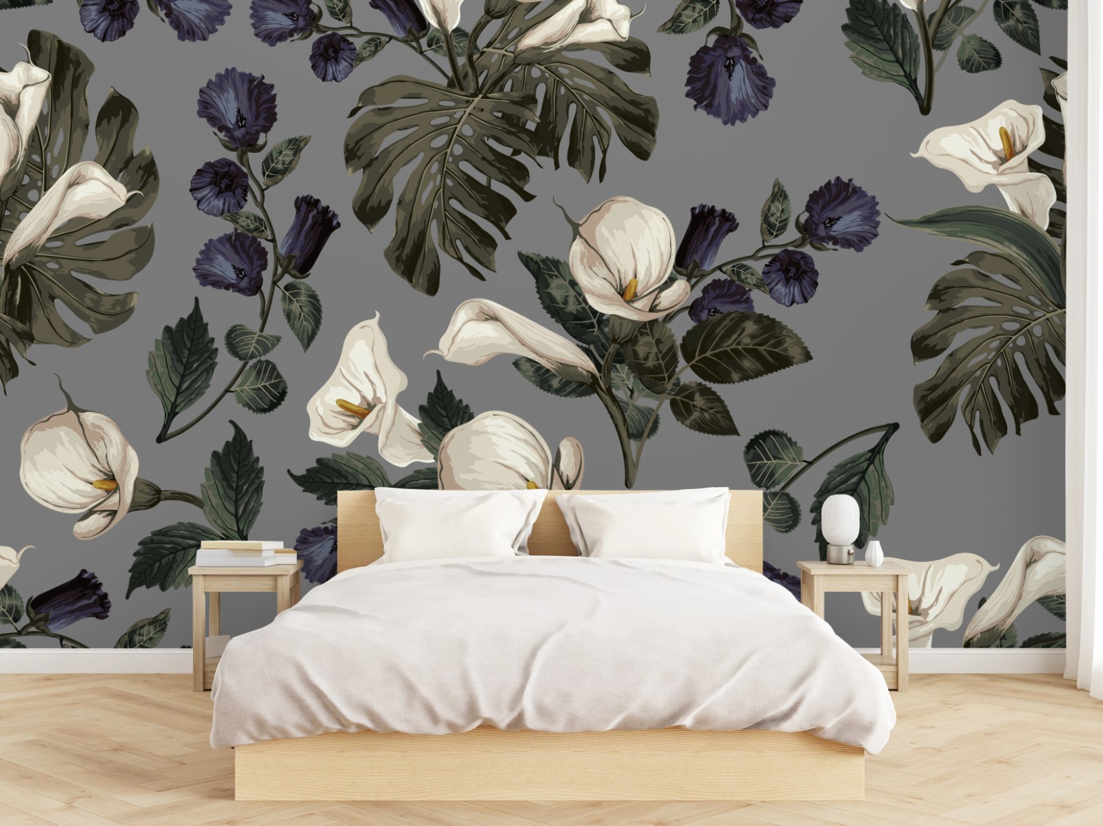 Fototapete Vintage calla blumenmuster auf grauem hintergrund