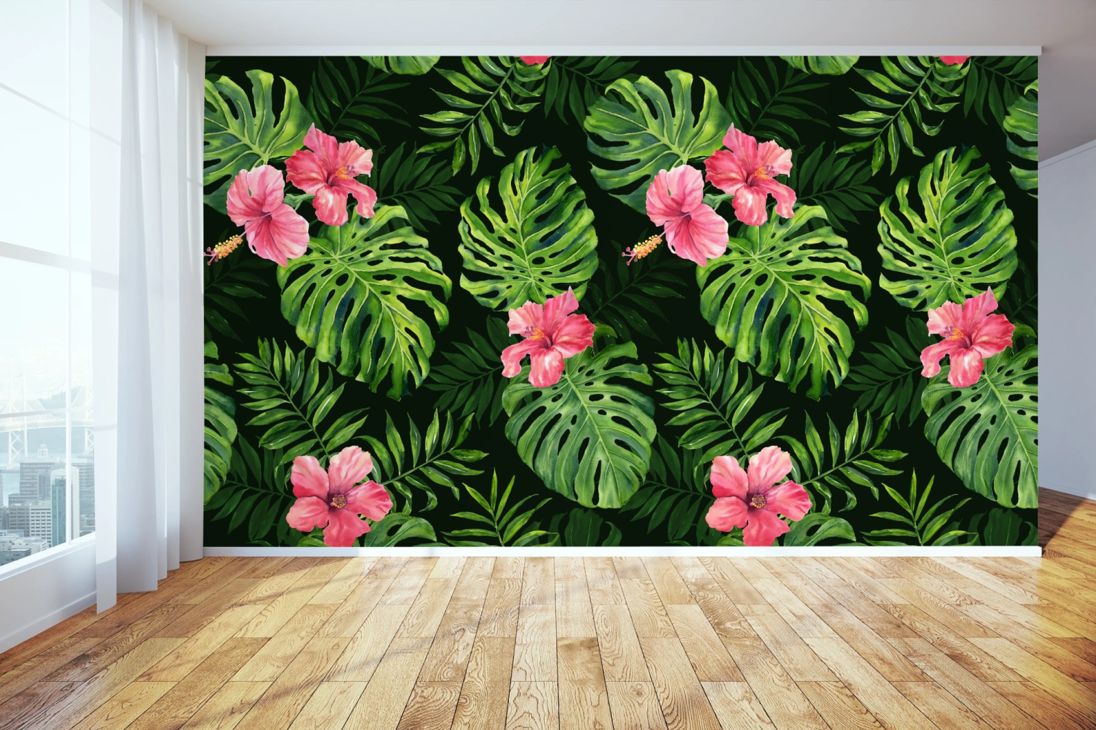 Fototapete Tropisches monstera- und hibiskus-motiv