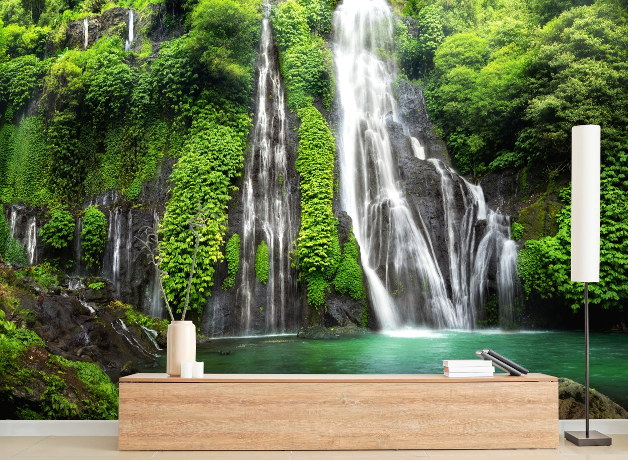 Fototapete Ruhiger wasserfall im smaragdgrünen wald