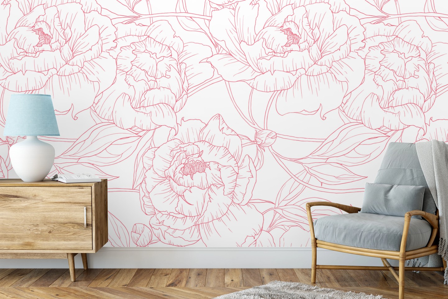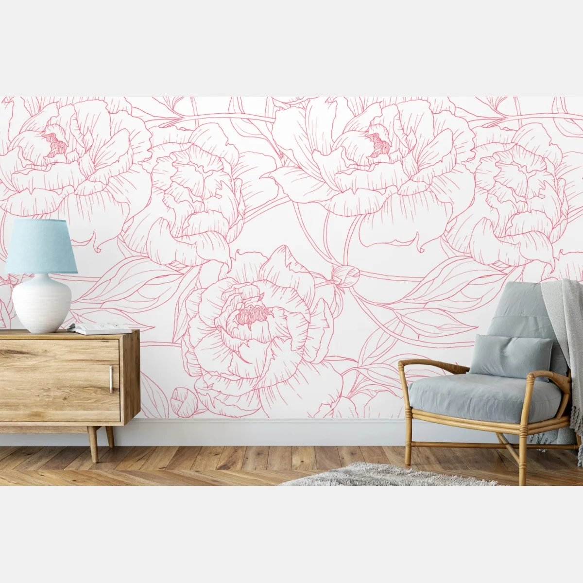 zarte rosa paeonien-line-art schafft ein dezentes botanisches muster und verleiht jedem raum ruhige eleganz.MehrWeniger