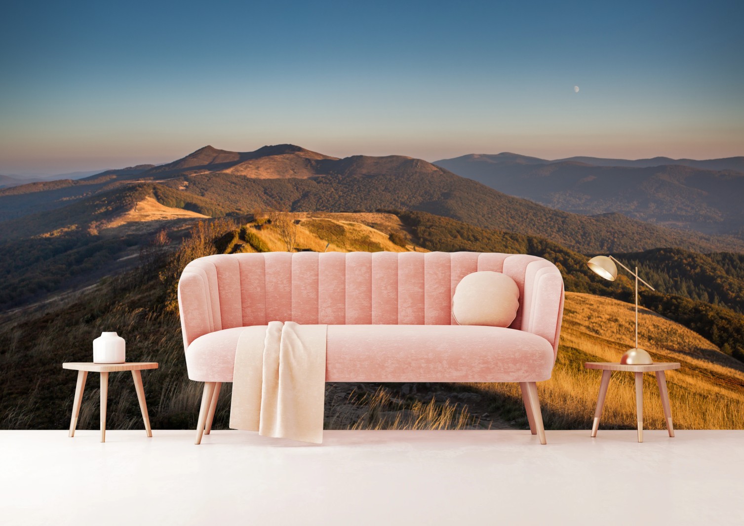 Fototapete Goldener bergrücken bei sonnenuntergang