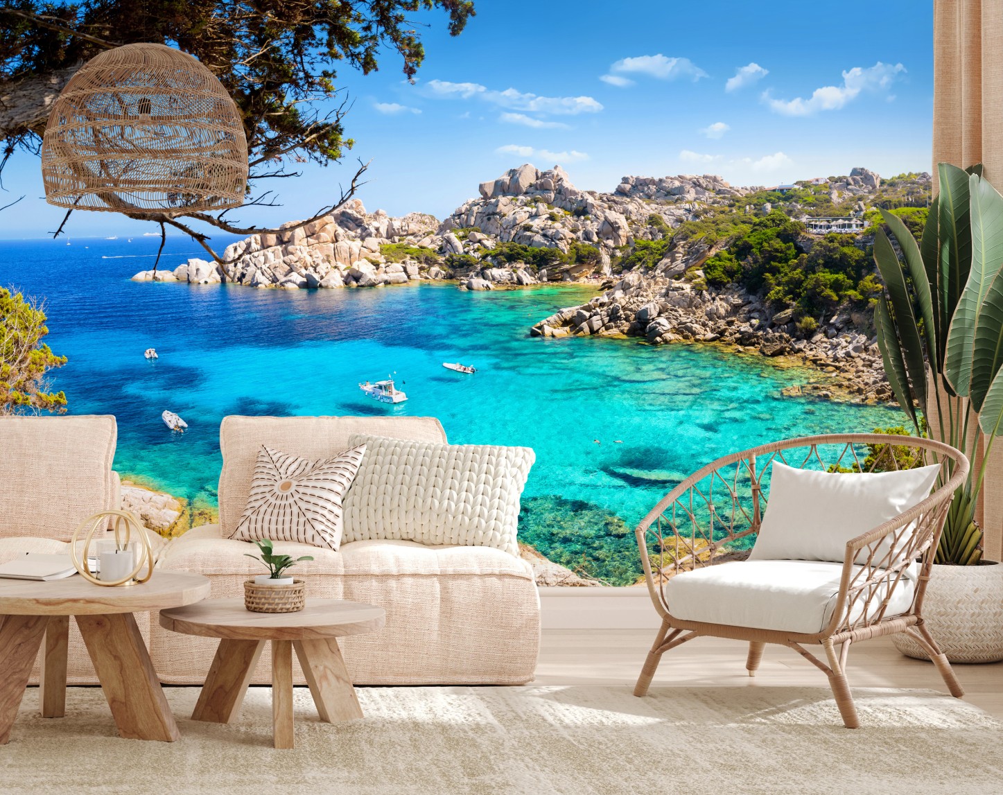Fototapete Türkisfarbene bucht mit felsiger küste
