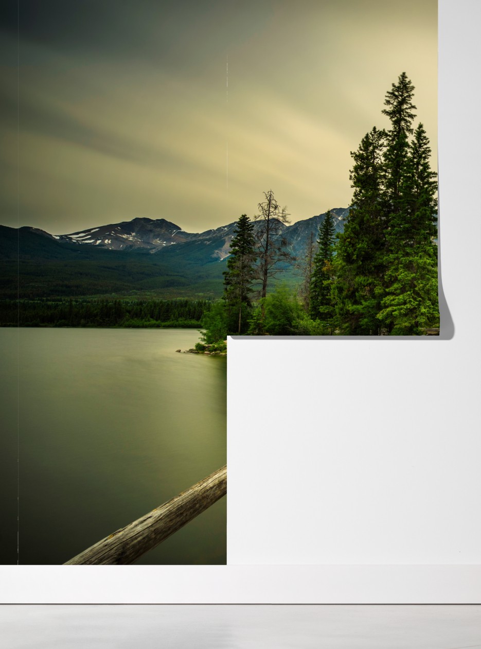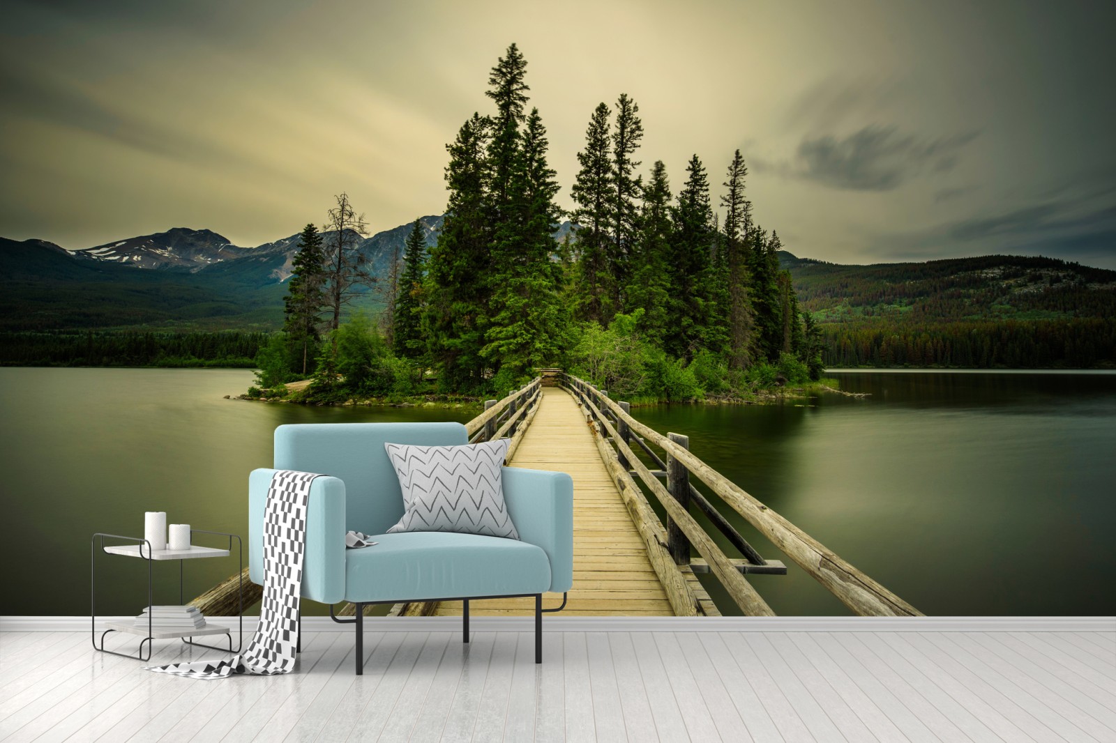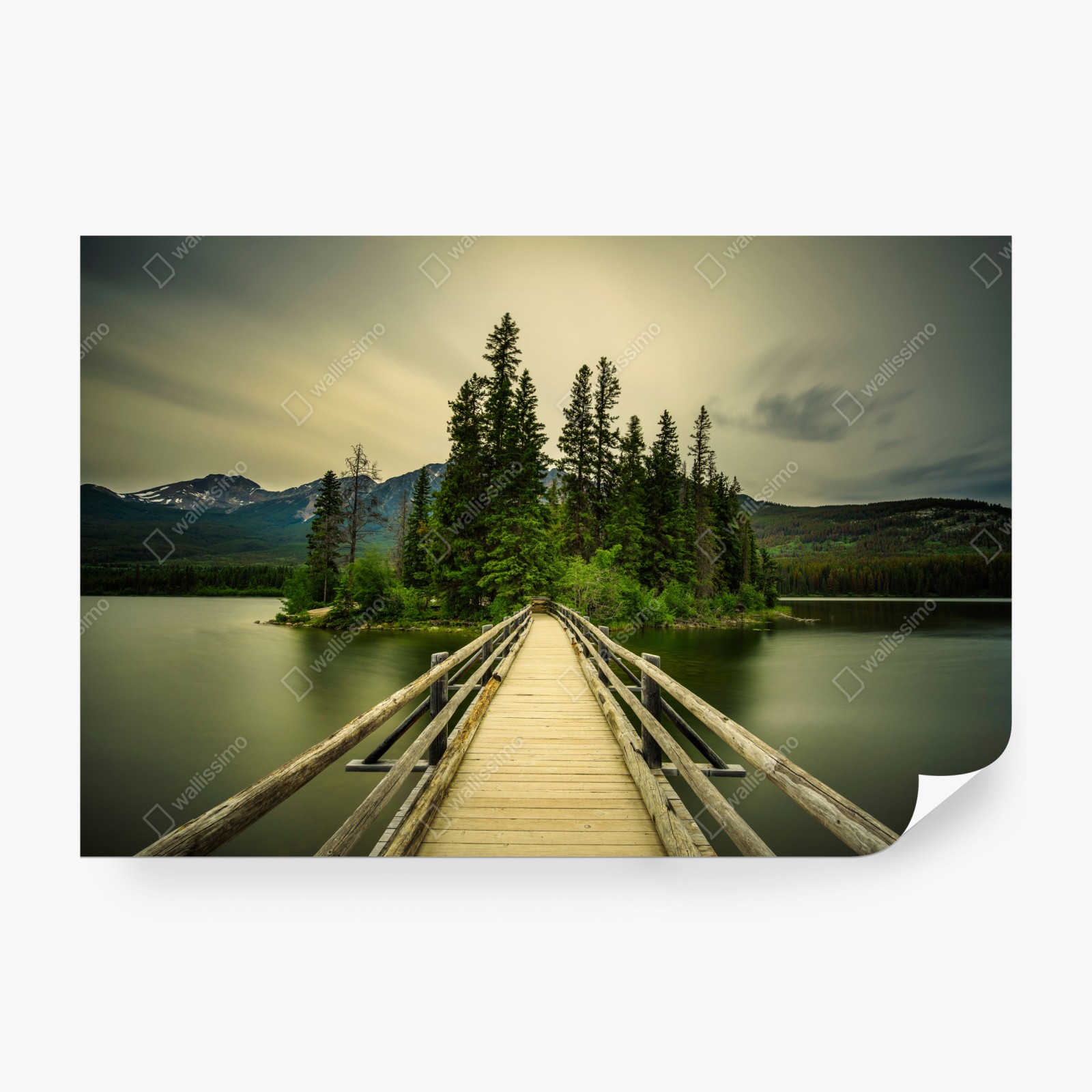 Fototapete abendlicher weg zur Pyramid Island, Jasper National Park