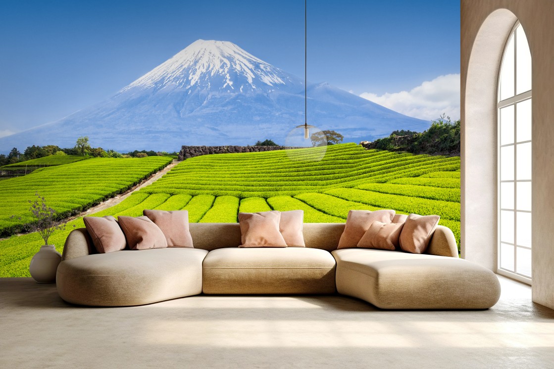 Fototapete Üppige teefelder am fuß von Mount Fuji