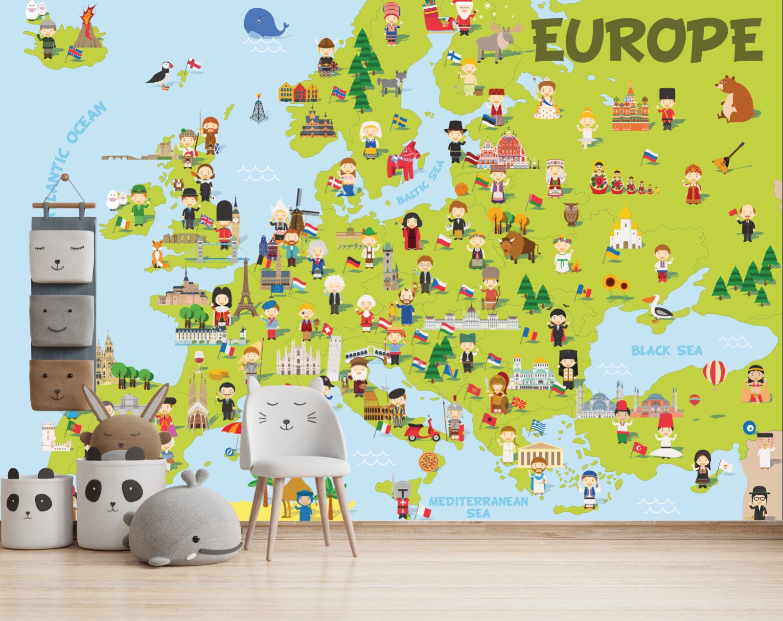 Fototapete Illustrierte Europa karte für kinder