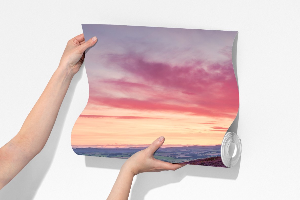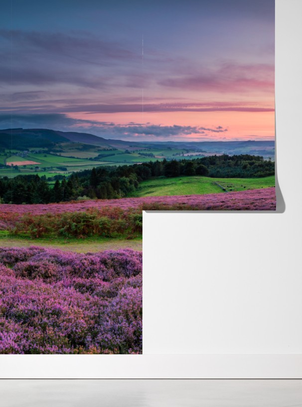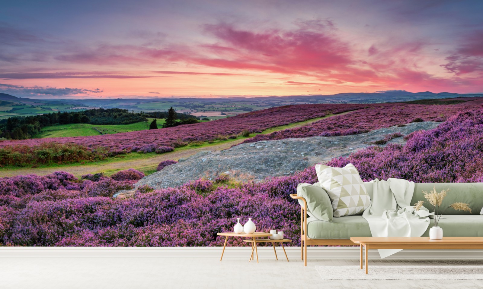 Fototapete violette heideflächen bei sonnenuntergang – Wallnifity®