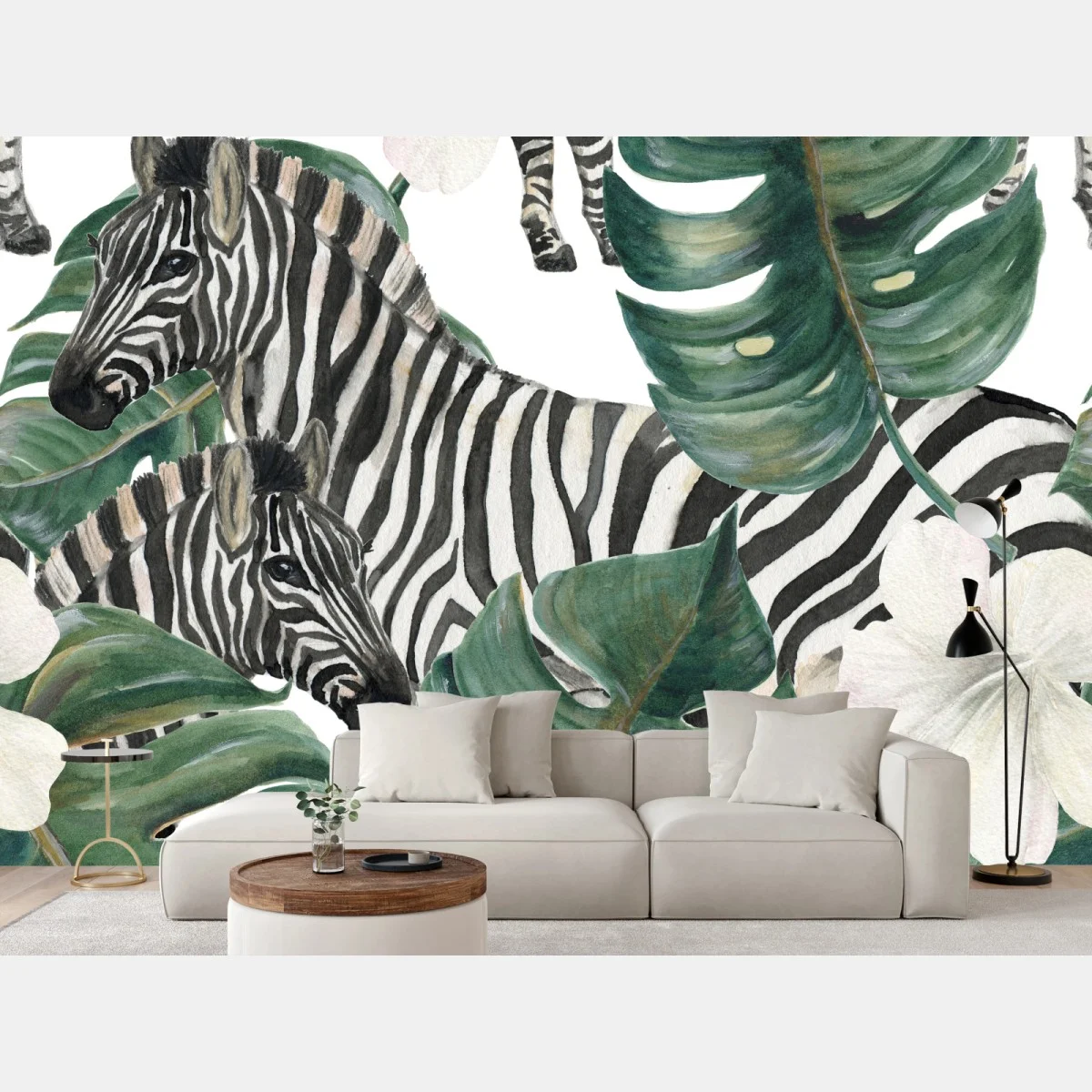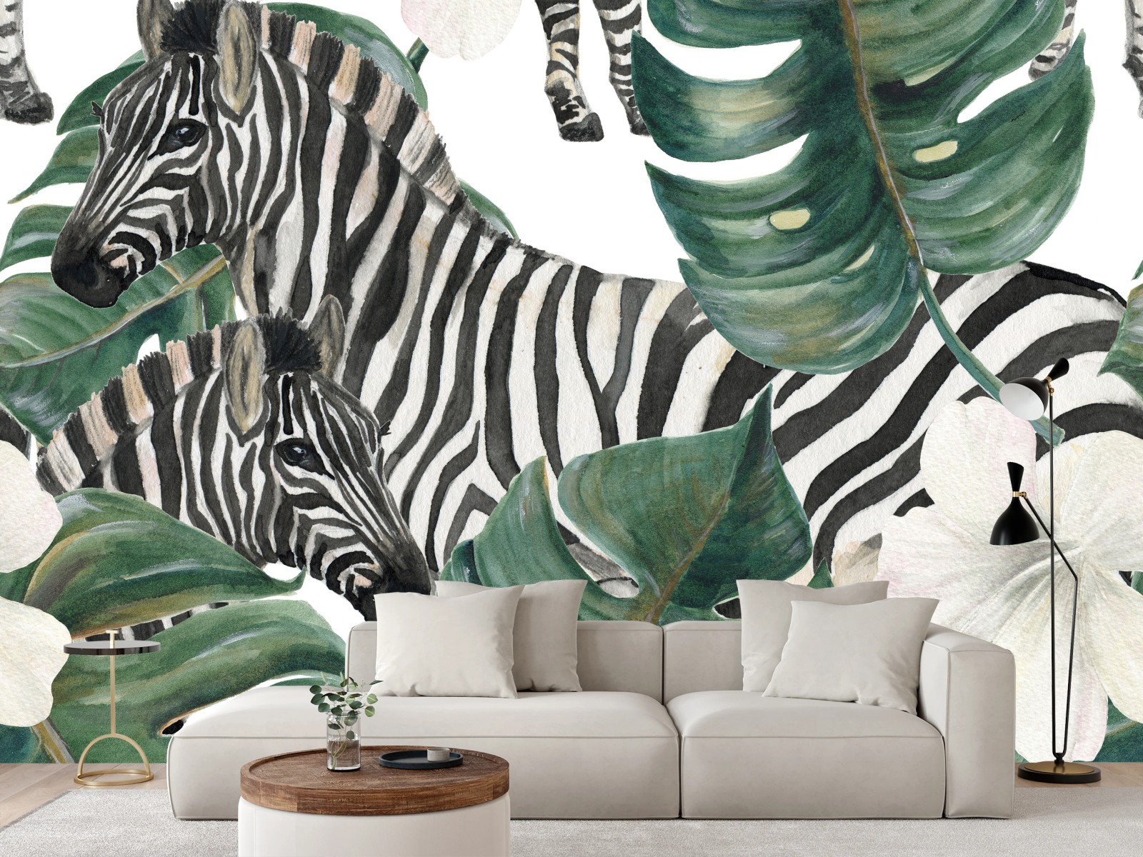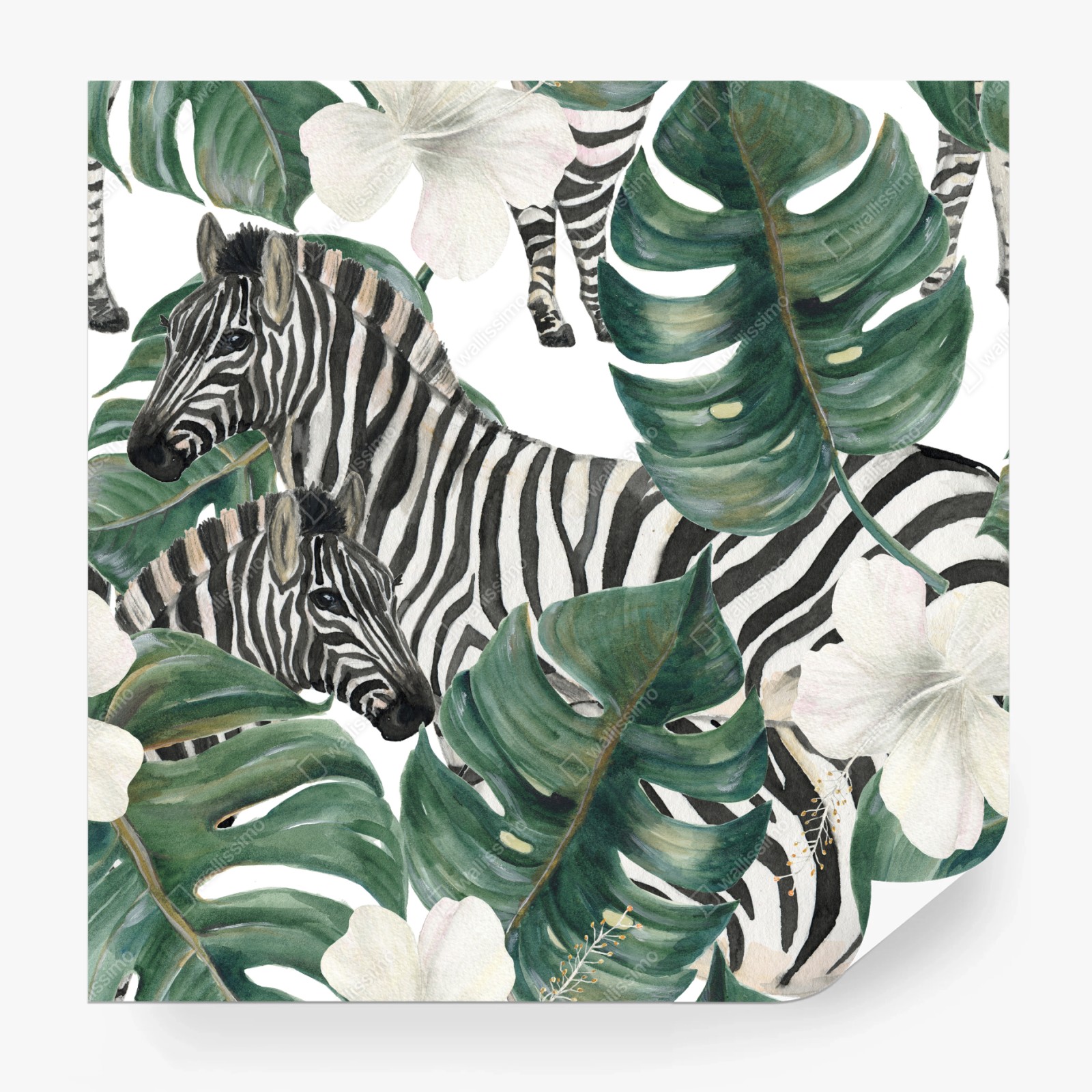 Fototapete Tropisches zebramotiv mit monsterablättern