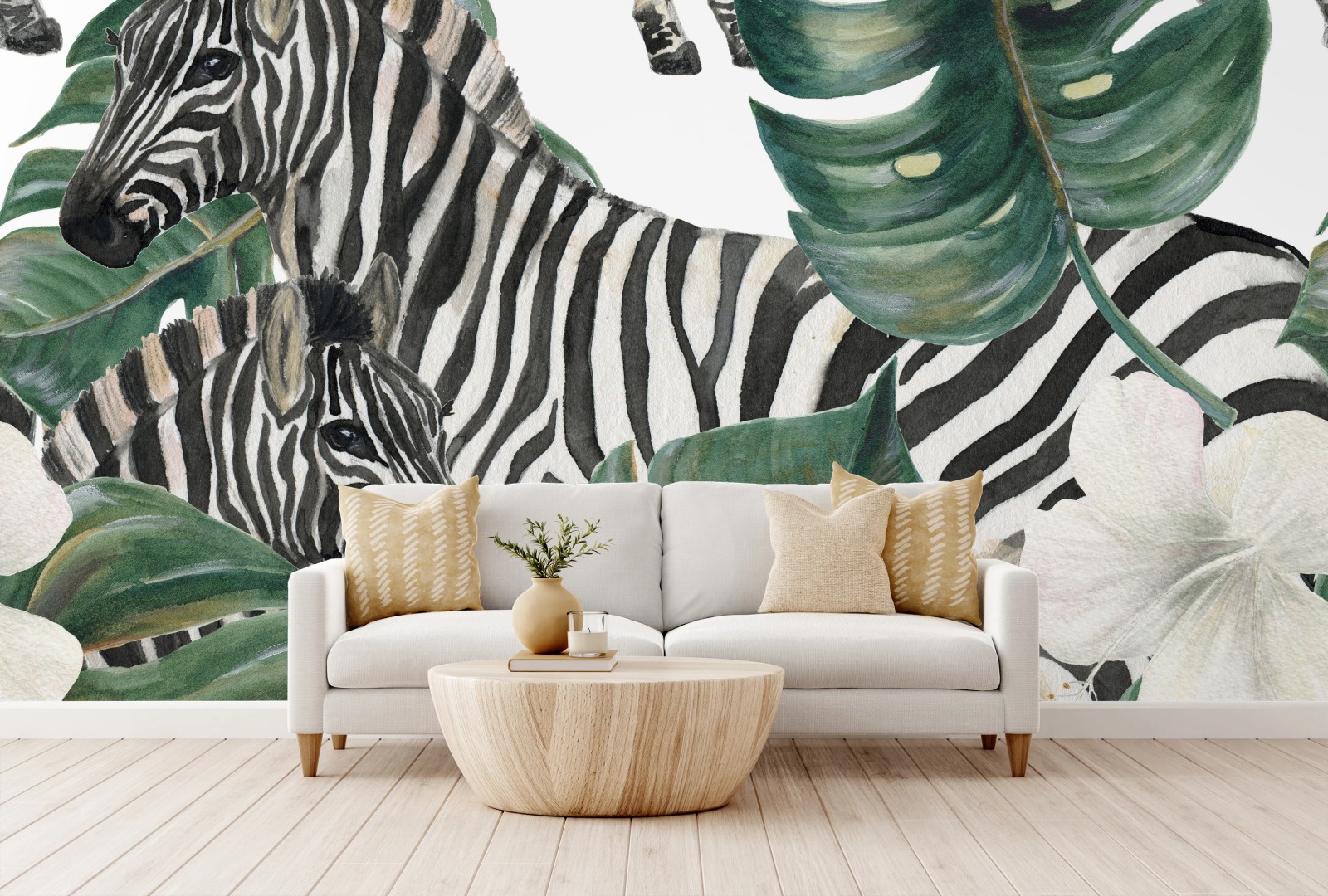 Fototapete Tropisches zebramotiv mit monsterablättern