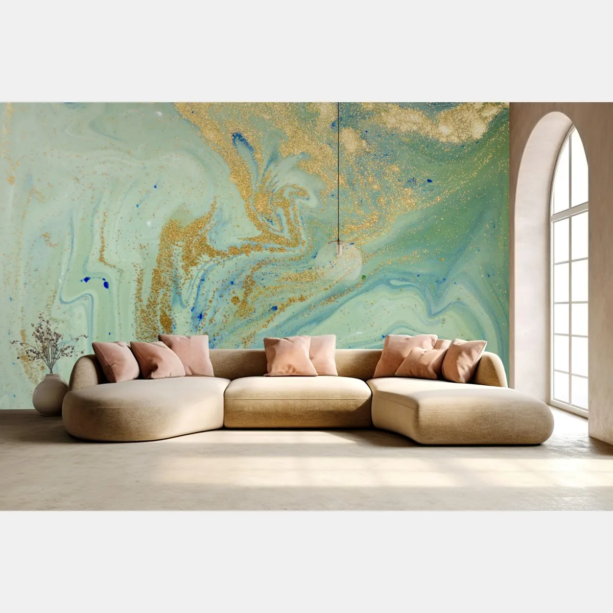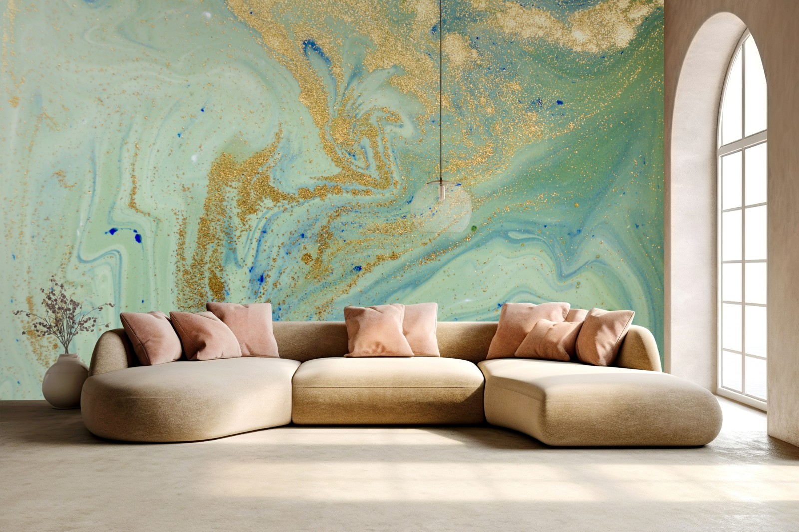 elegante türkise marmorabstraktion mit schimmernden goldenen akzenten verleiht jedem interieur eine ruhige und luxuriöse atmosphäre.