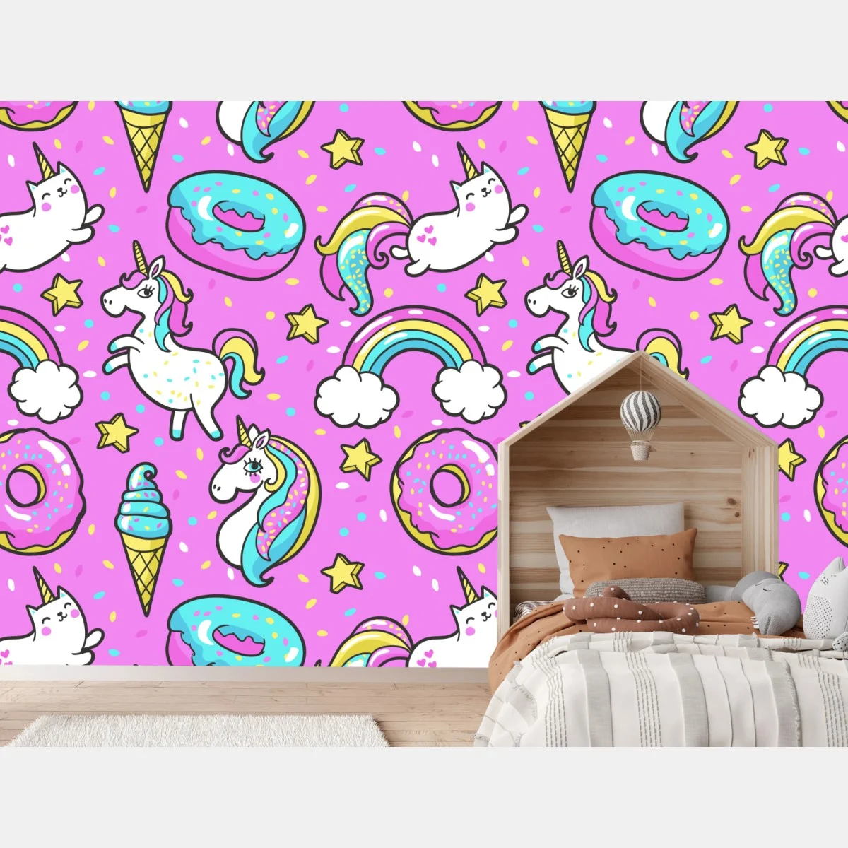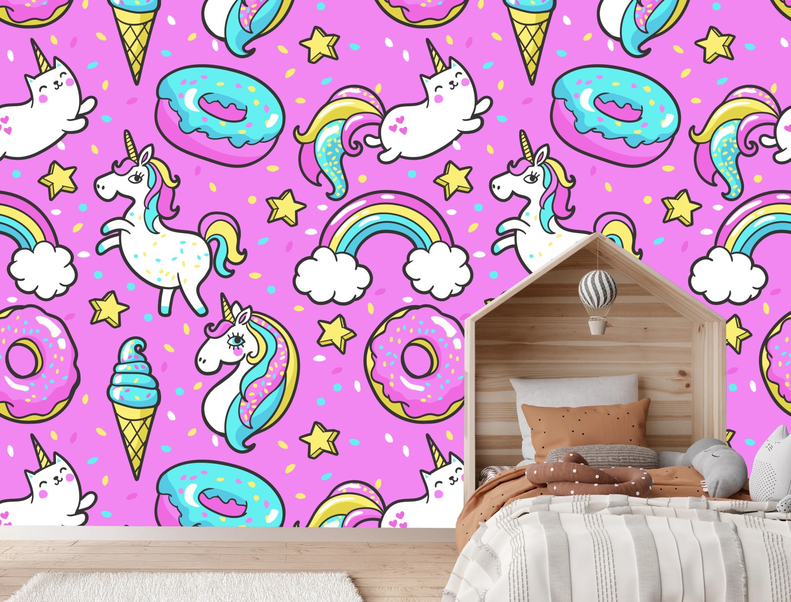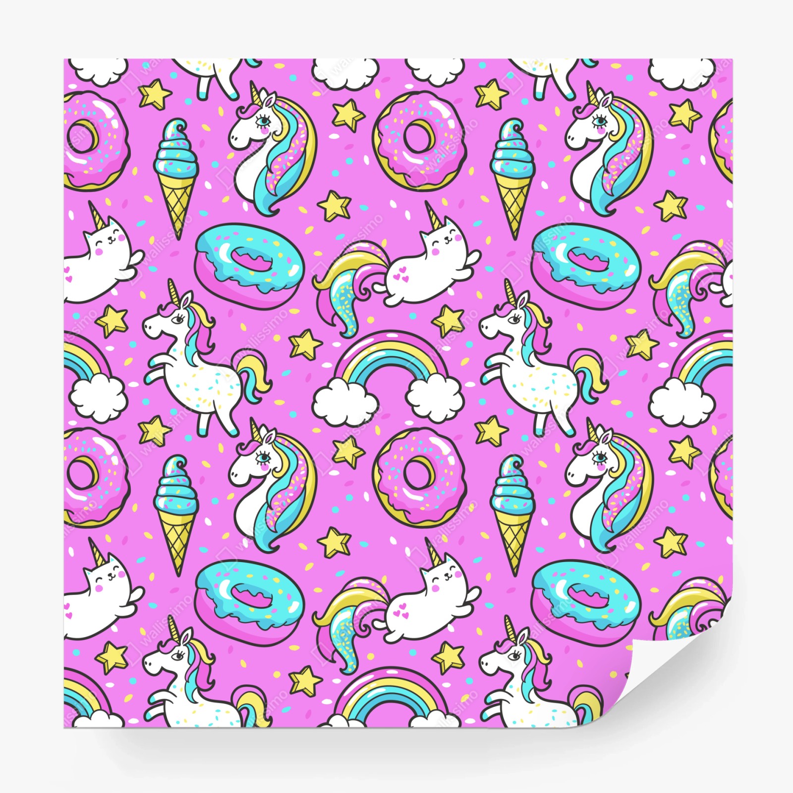 Fototapete Pastell einhörner und süßigkeiten