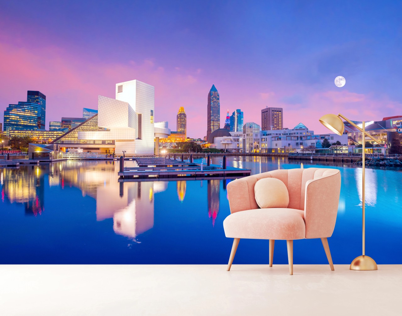 Fototapete Stadtskyline von Cleveland bei dämmerung
