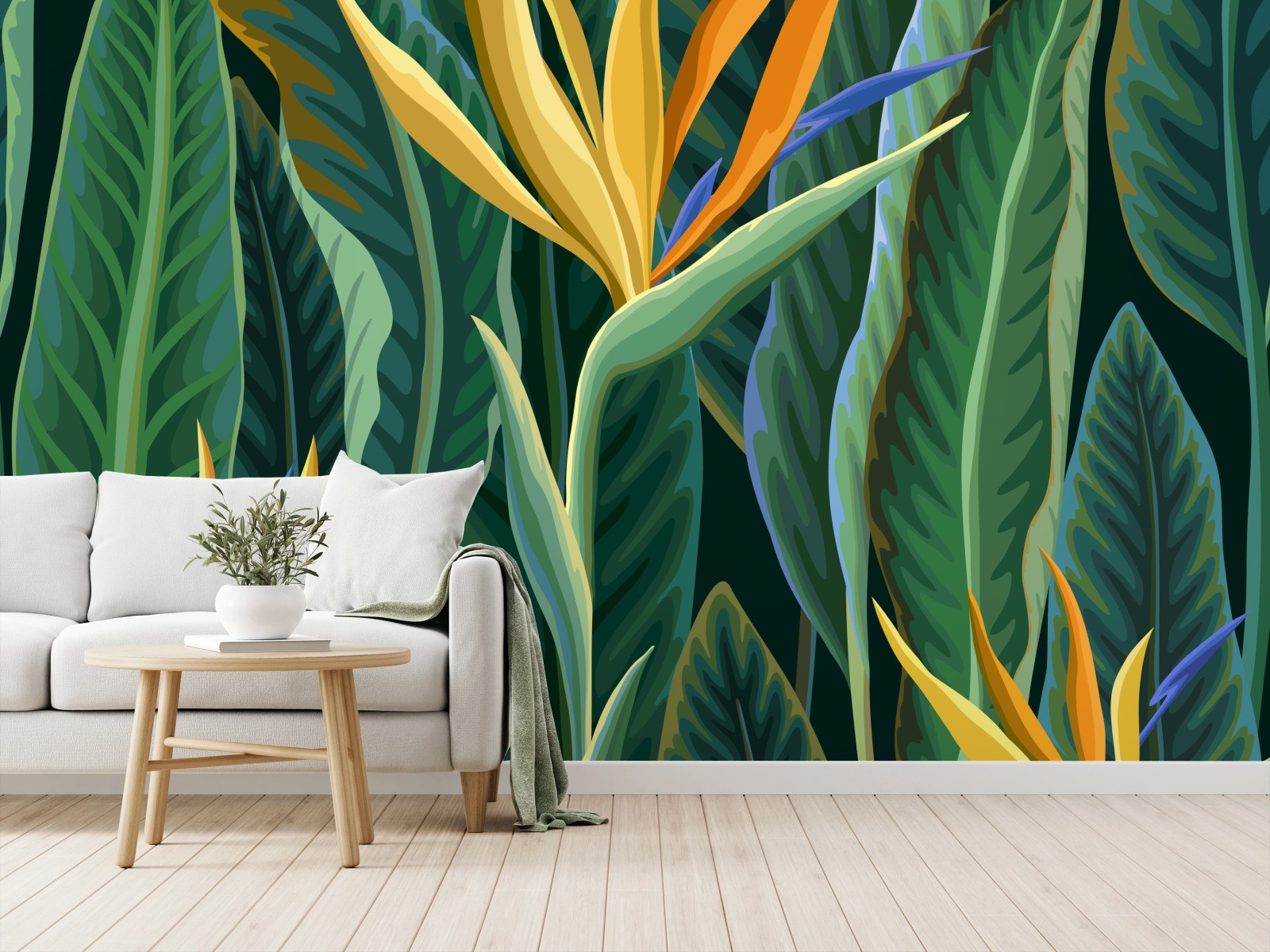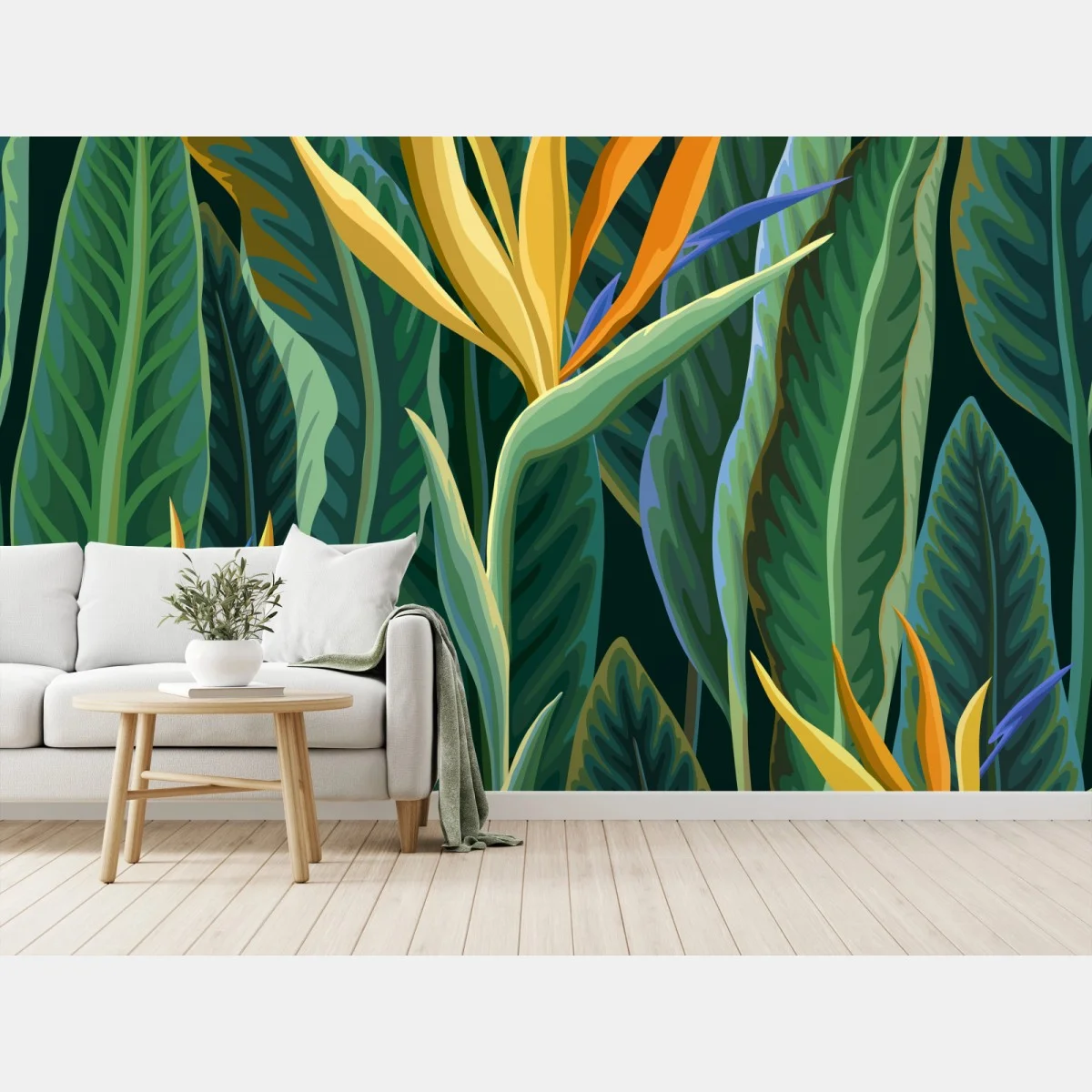 Fototapete Tropische illustration mit strelitzie und üppigen blättern