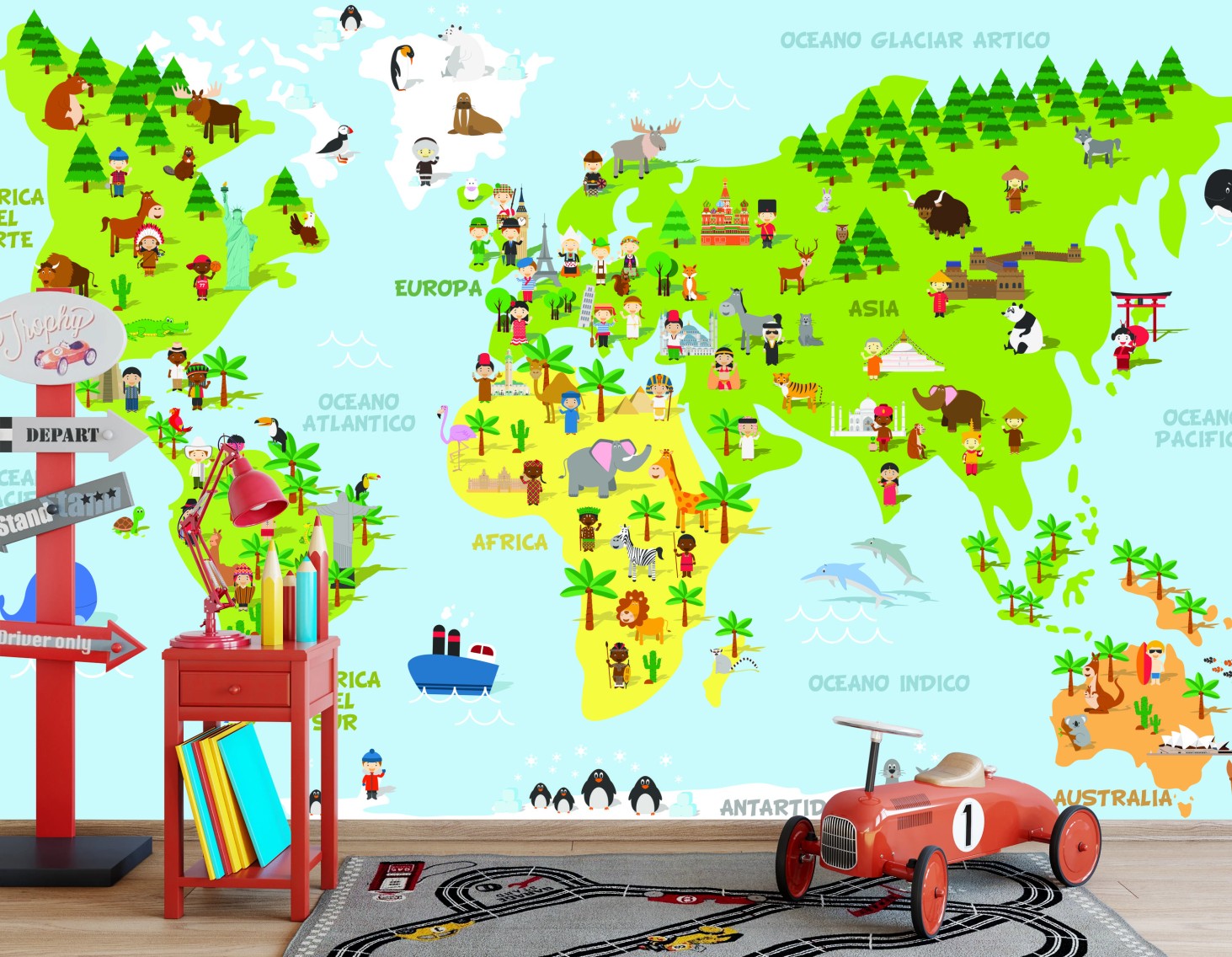 Fototapete Bunte illustrierte weltkarte für kinder
