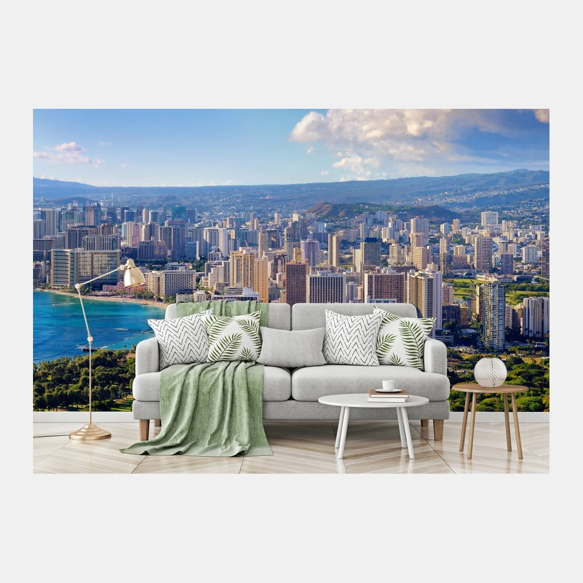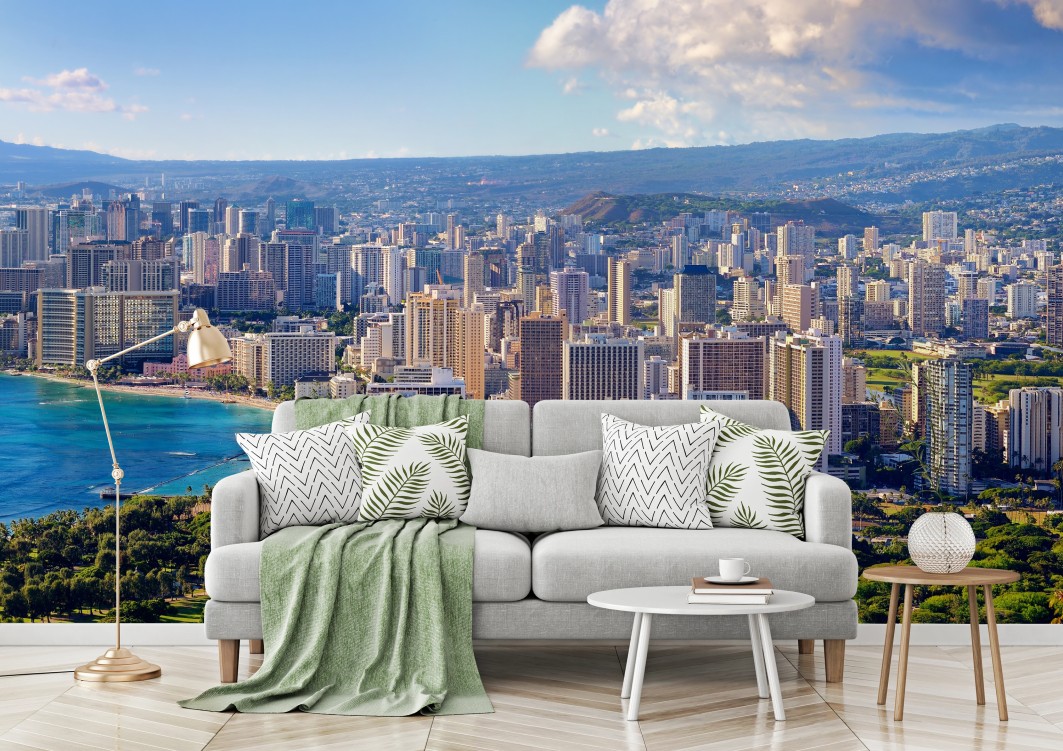 Fototapete Panoramablick auf eine tropische küstenstadt