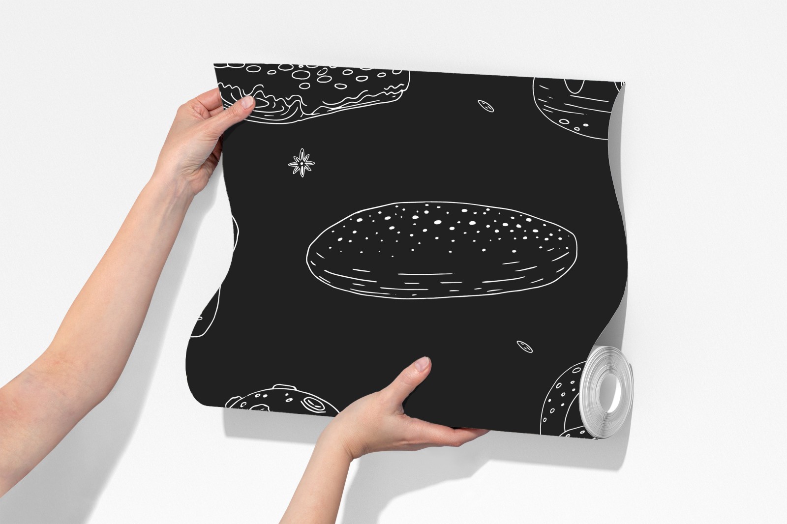 Fototapete handgezeichnetes gebäckmuster auf dunklem hintergrund – Wallnifity®