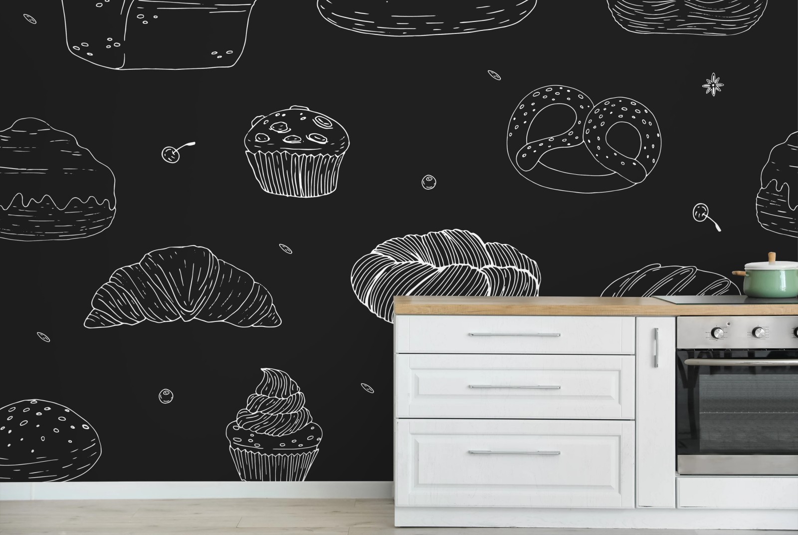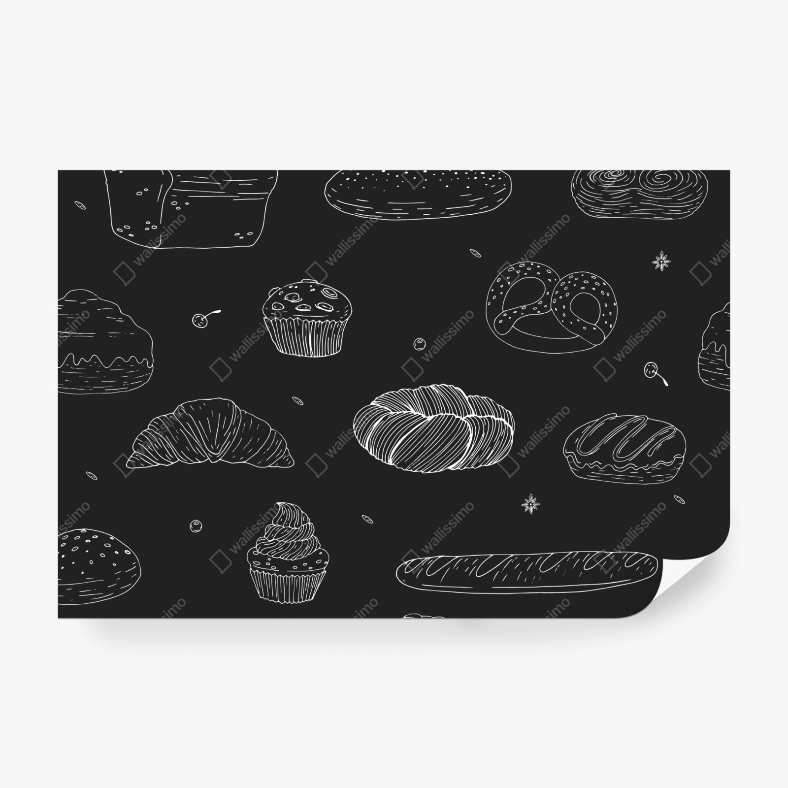 Fototapete Handgezeichnetes gebäckmuster auf dunklem hintergrund