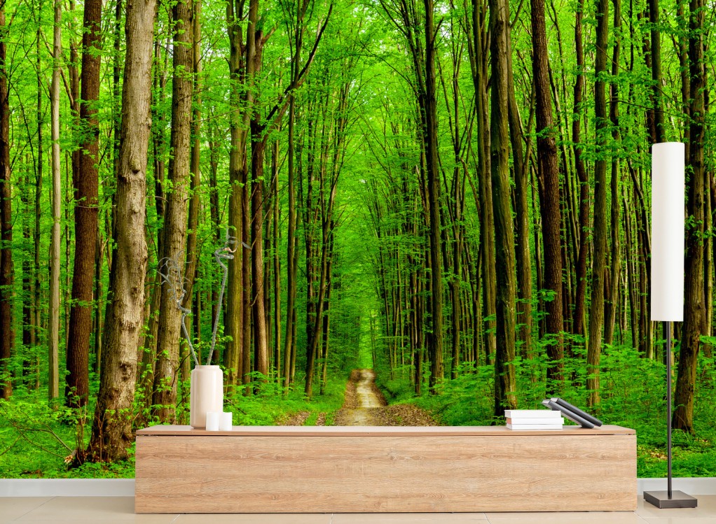 Fototapete grüner waldweg im frühling