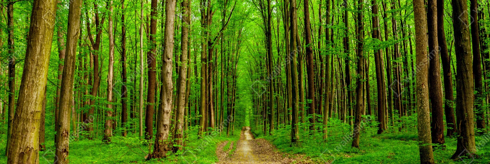 üppiger grüner waldweg im frühling, perfekt um die ruhe der natur in ihren raum zu bringen.