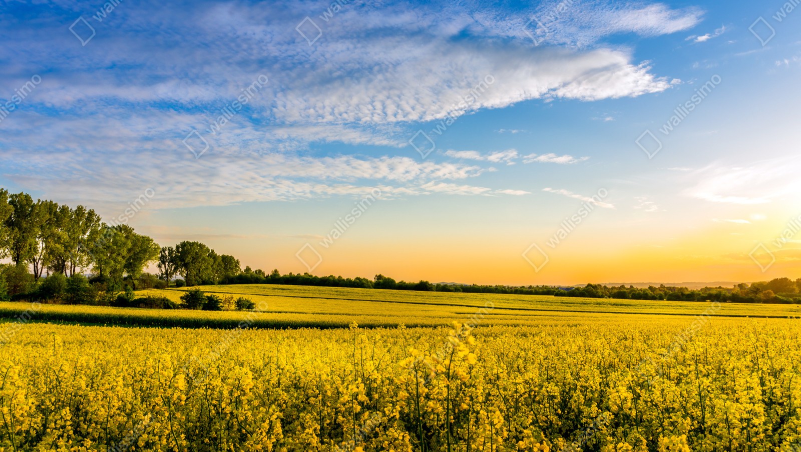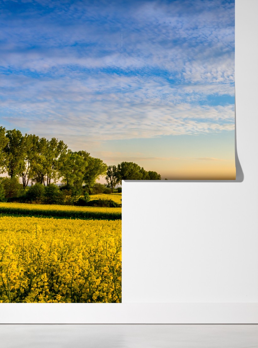 Fototapete sonnenbeschienenes rapsfeld im abendlicht – Wallnifity®