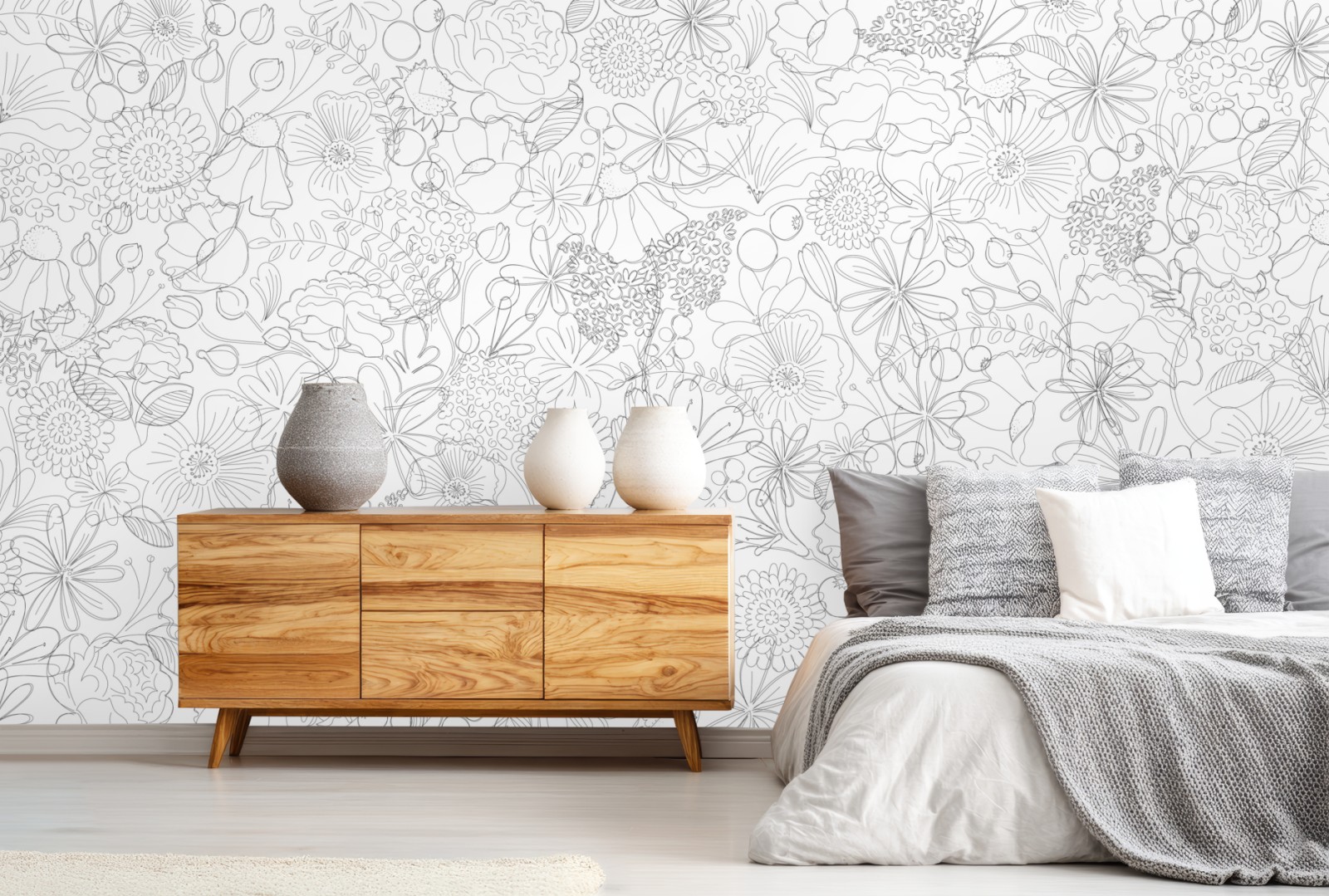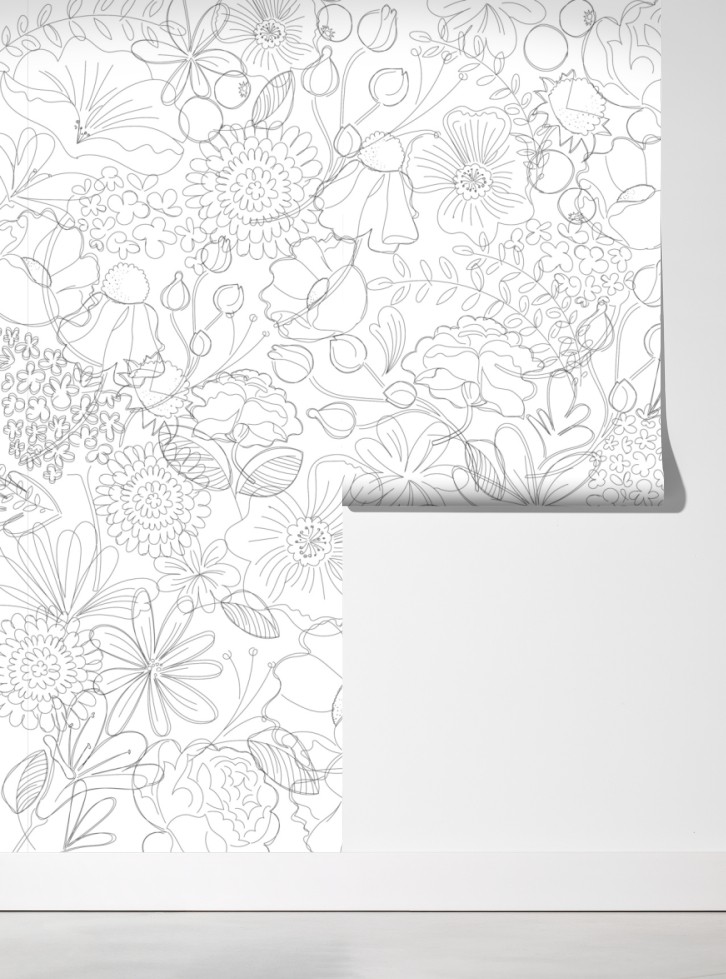 Fototapete zartes handgezeichnetes blumenlinienmuster