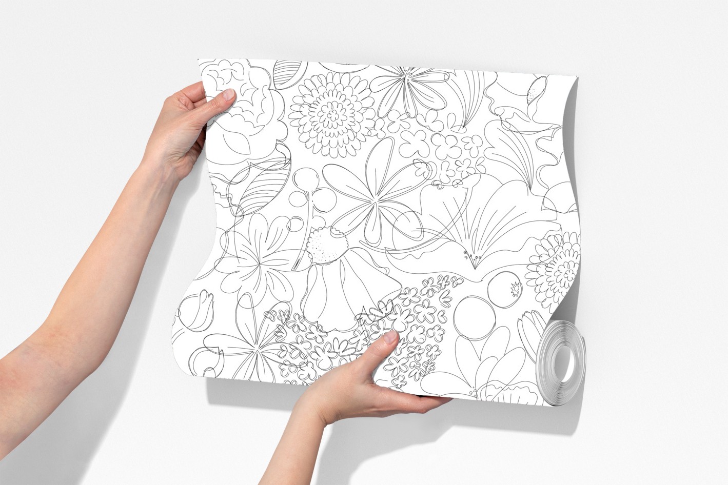 zartes schwarzweißes blumenmuster in linienzeichnung, perfekt für moderne interieur und kreative gestaltungen.