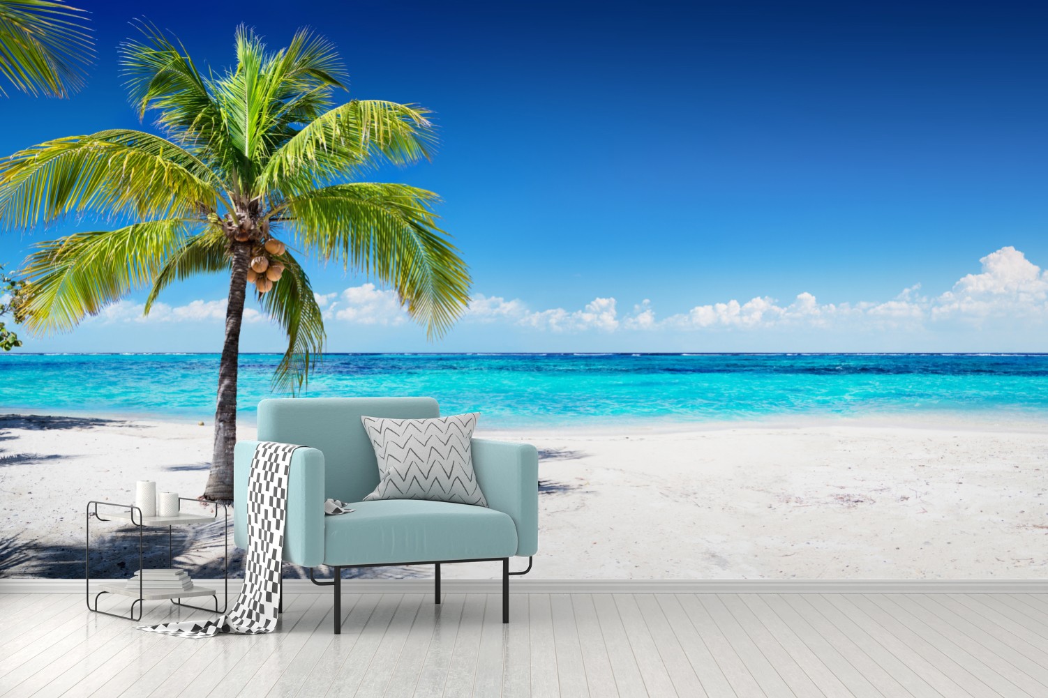 Fototapete Tropische palme an einer türkisfarbenen bucht