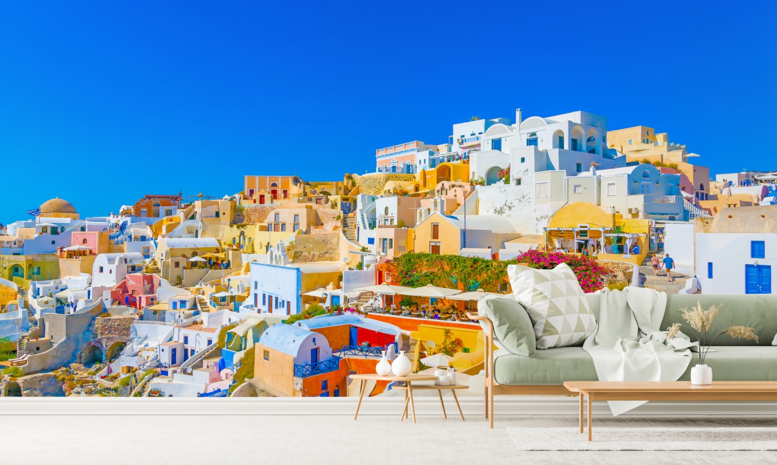 Fototapete sonniges Dorf Oia, Santorini – Wallnifity®