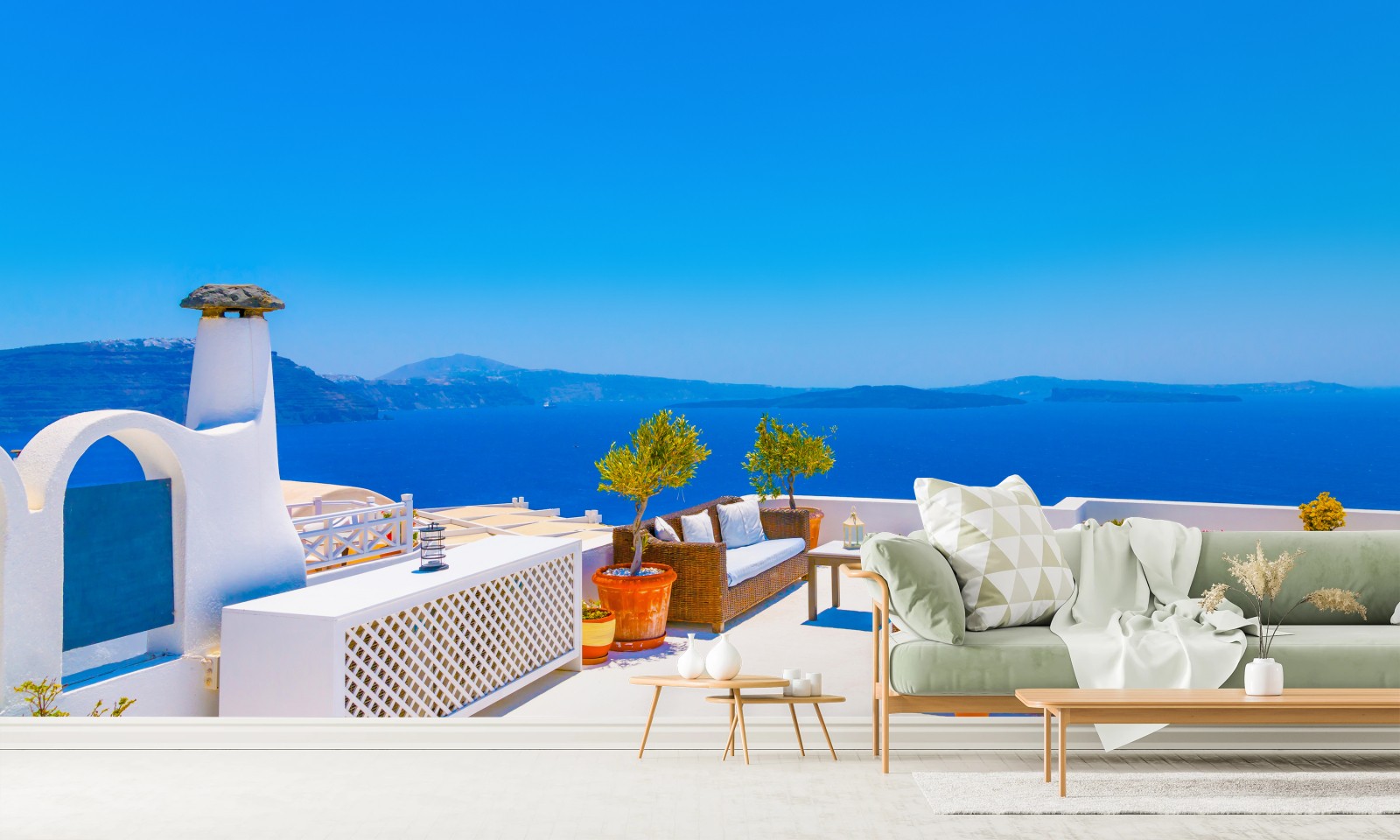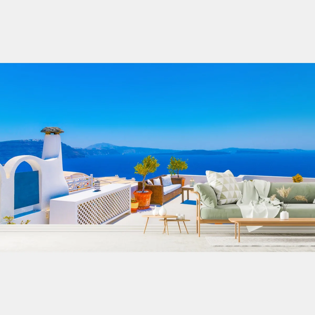 Fototapete Terrasse in Oia mit meerblick, Santorini
