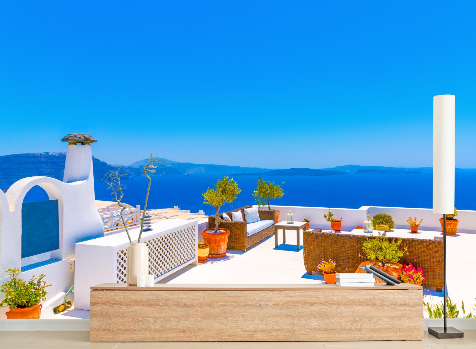 Fototapete Terrasse in Oia mit meerblick, Santorini