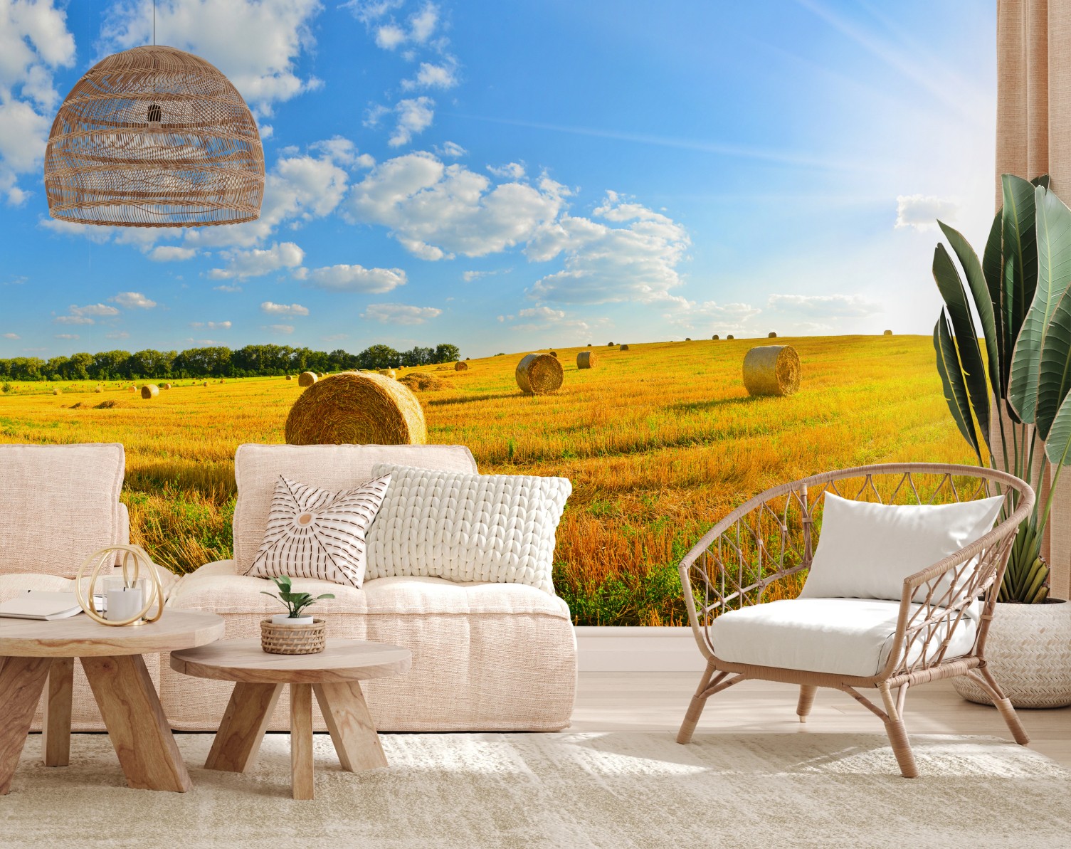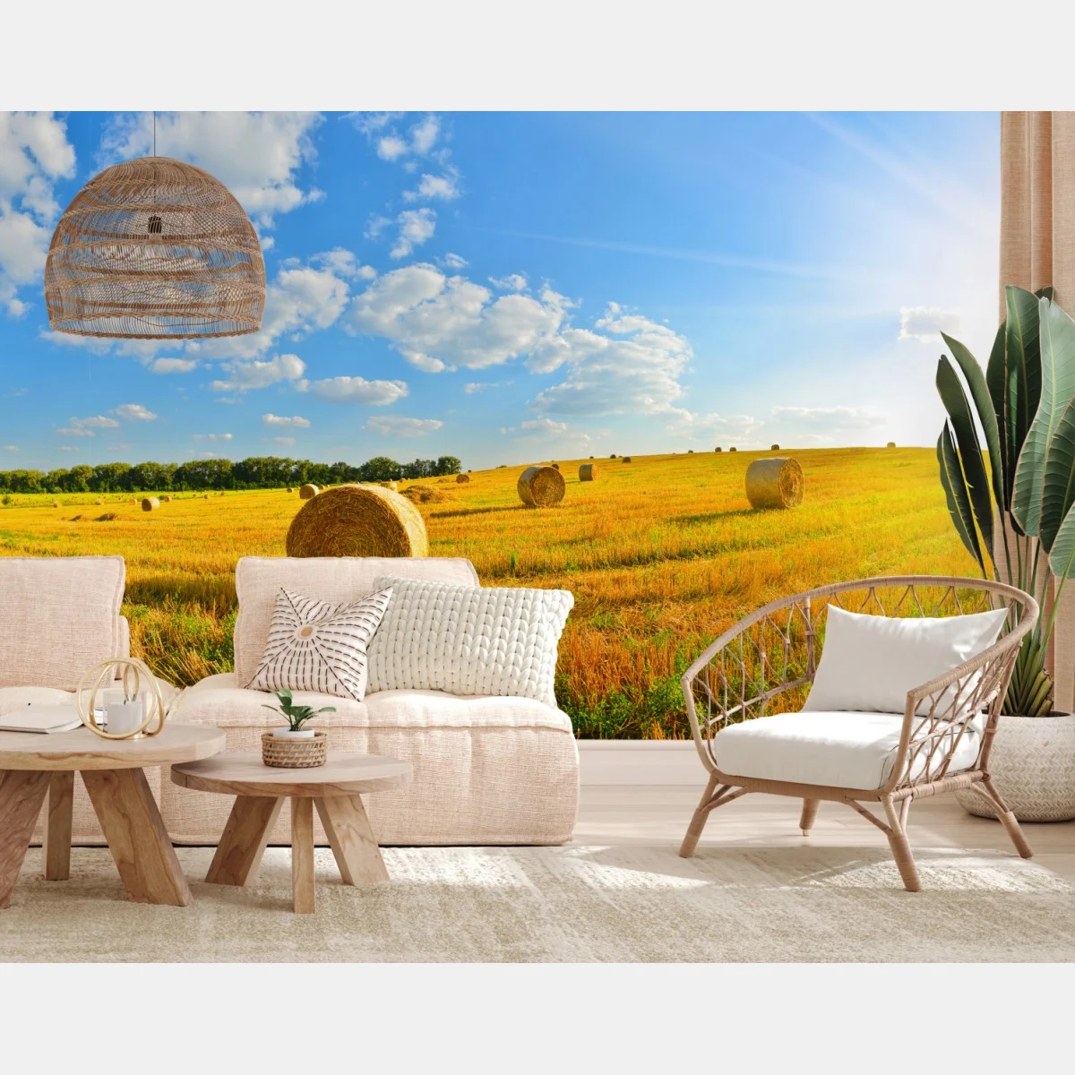 Fototapete Goldenes heufeld unter blauem himmel