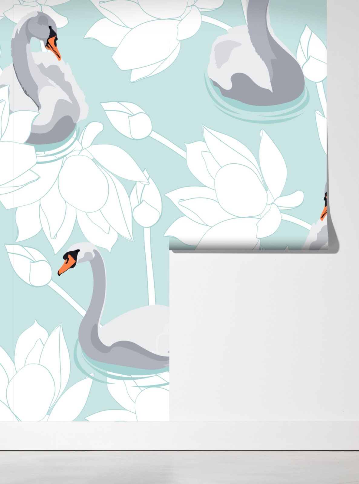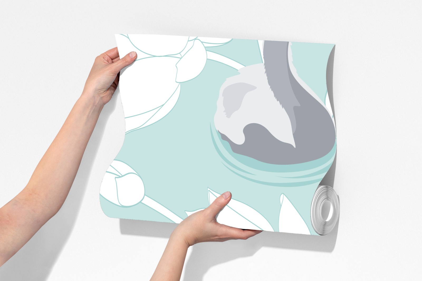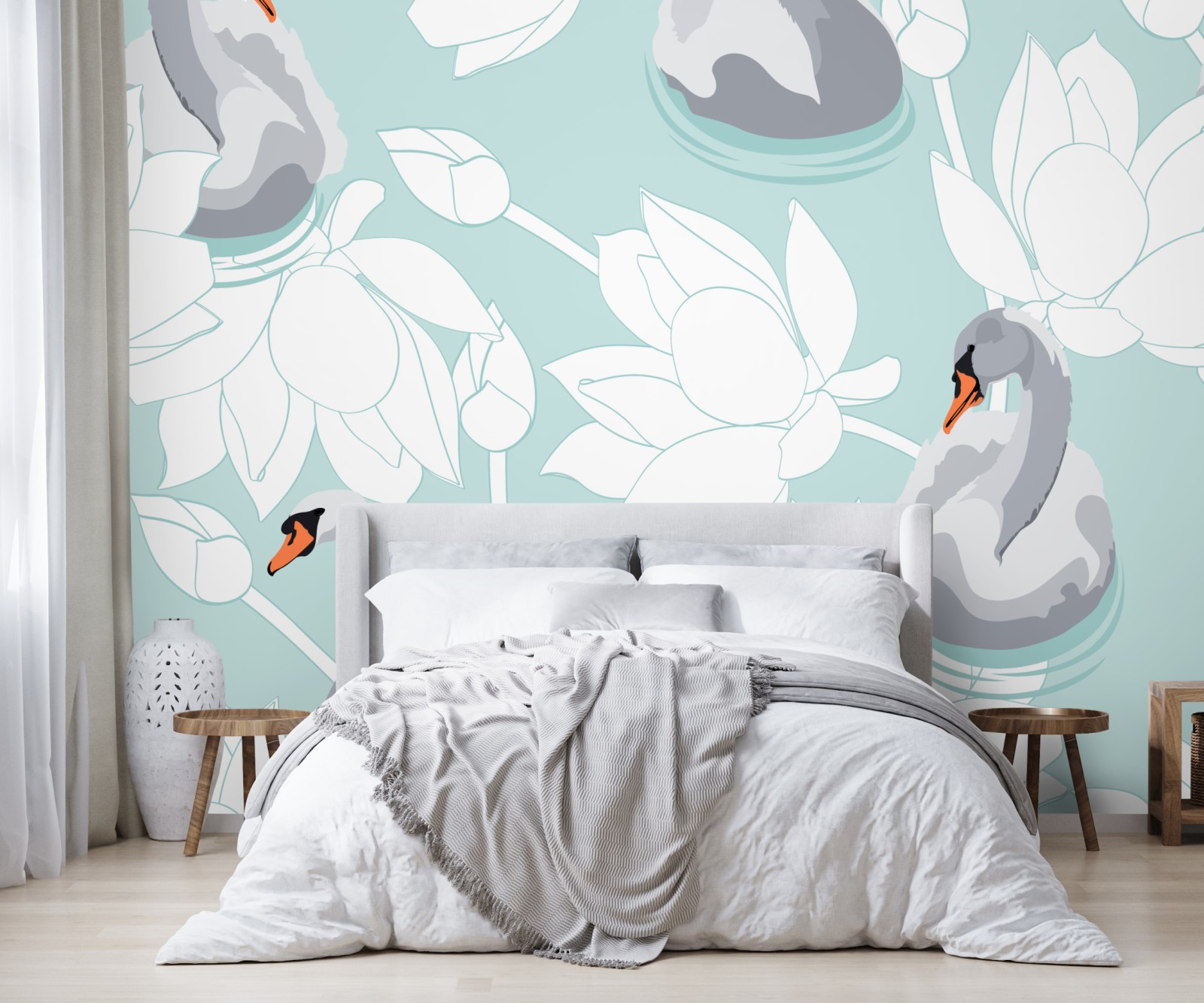 Fototapete sanfte schwäne und lotusblumen – Wallnifity®
