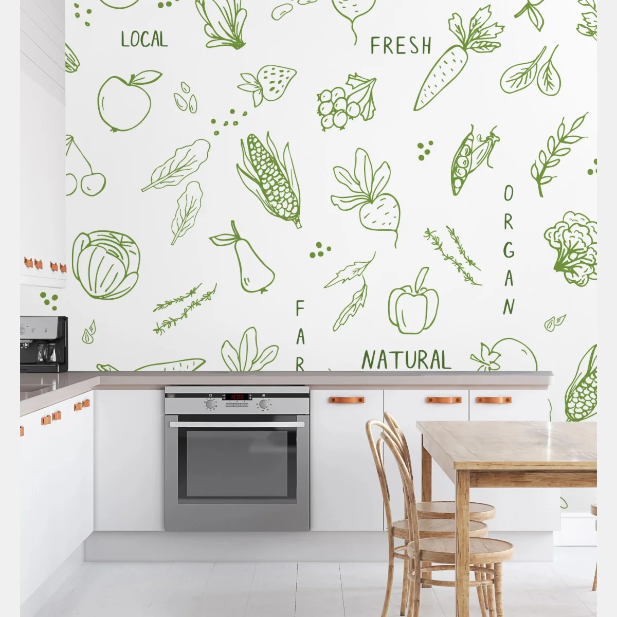 Fototapete Handgezeichnetes gemüse- und obstmuster