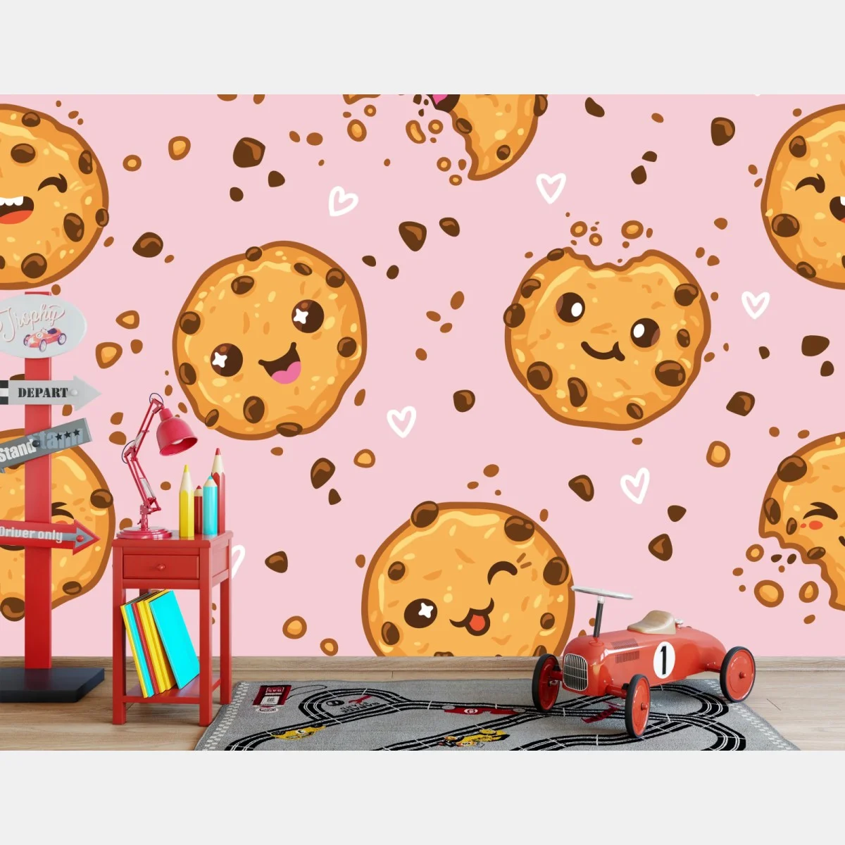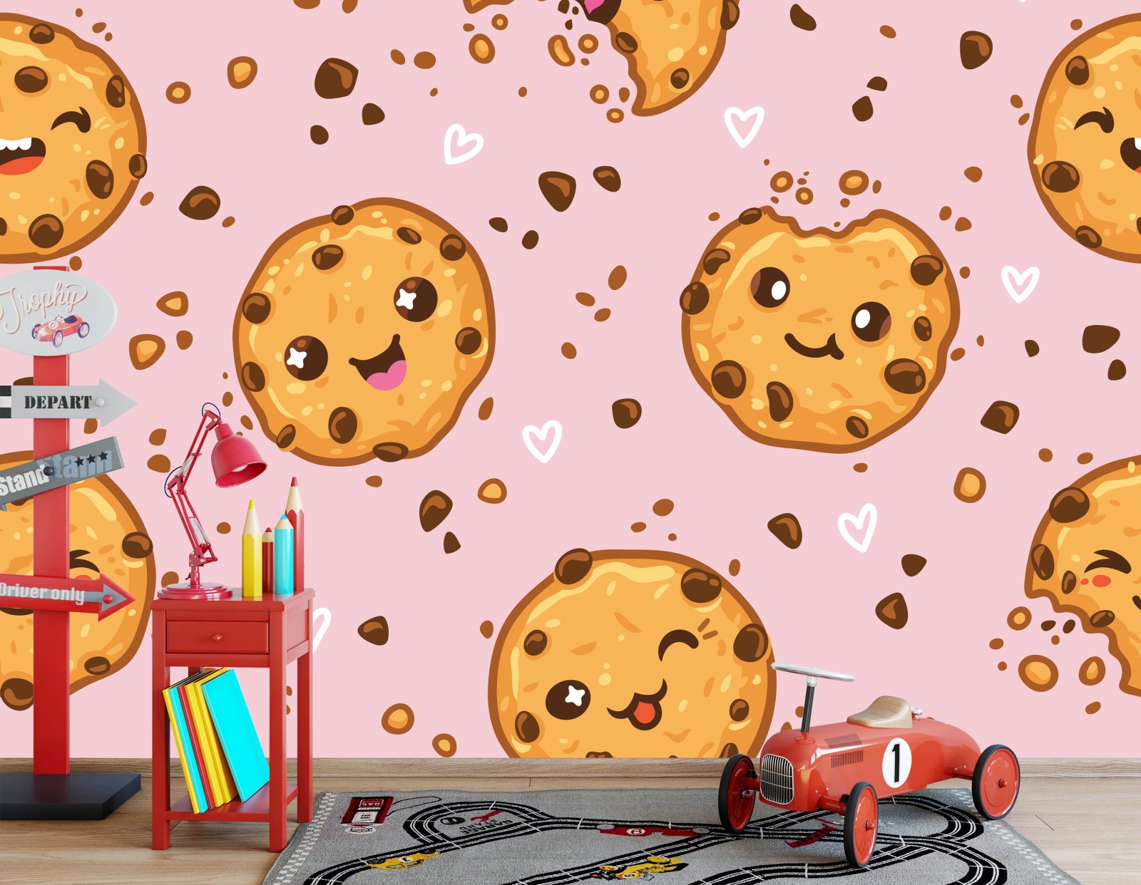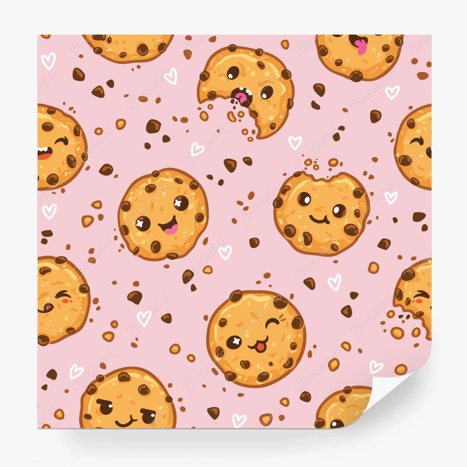 Fototapete Niedliches kawaii-keksmuster auf rosa hintergrund