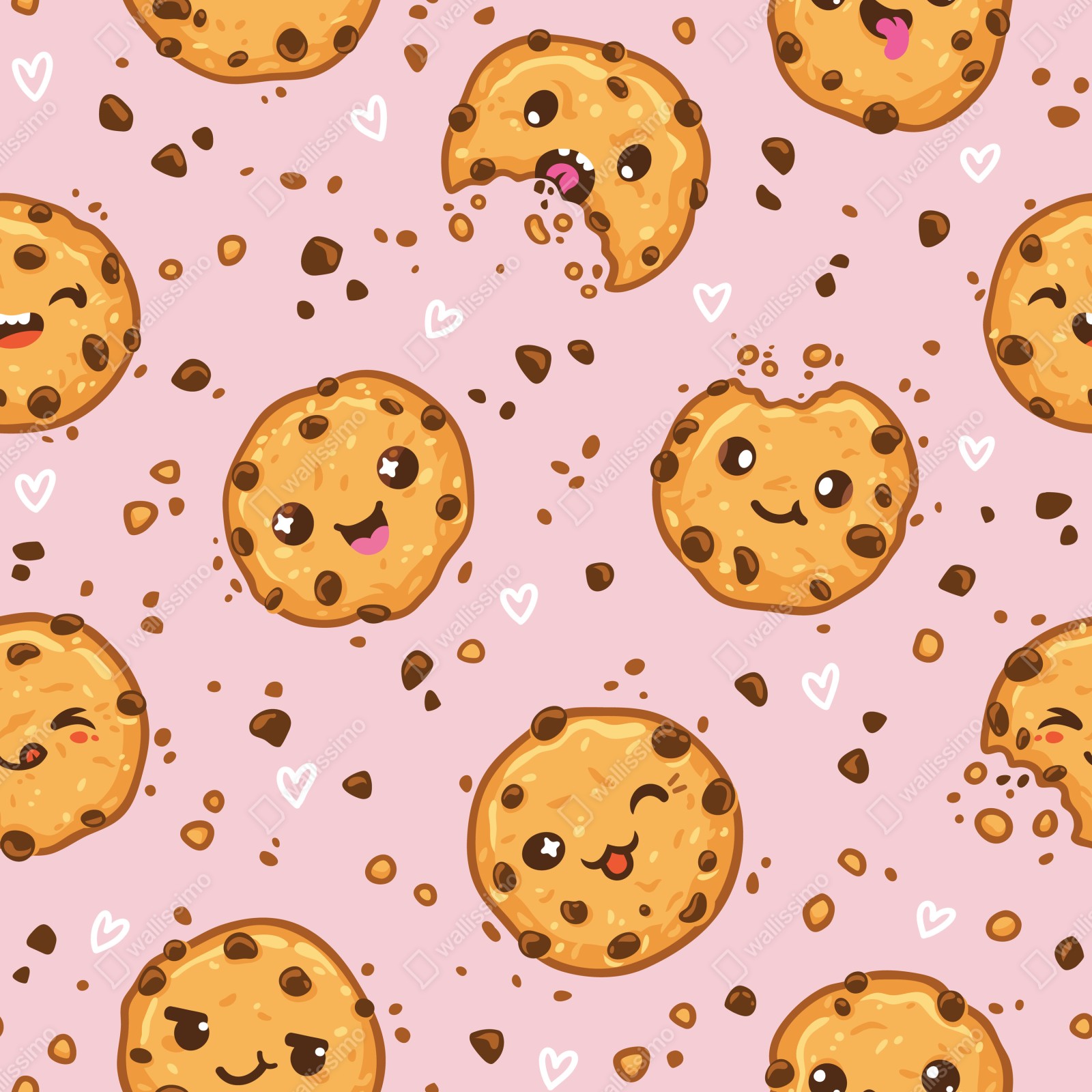 Fototapete niedliches kawaii-keksmuster auf rosa hintergrund – Wallnifity®