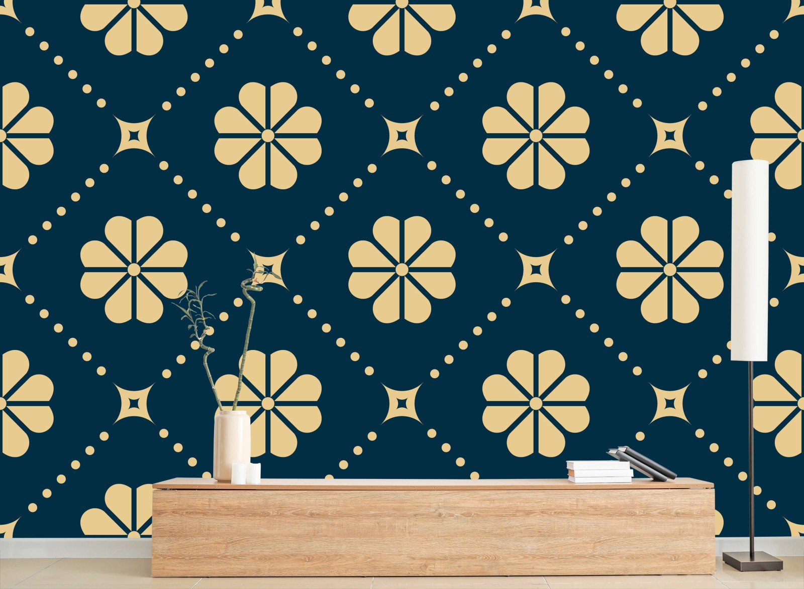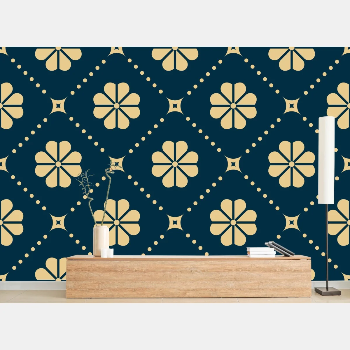 Fototapete Türkis beiges blumen geometrisches muster