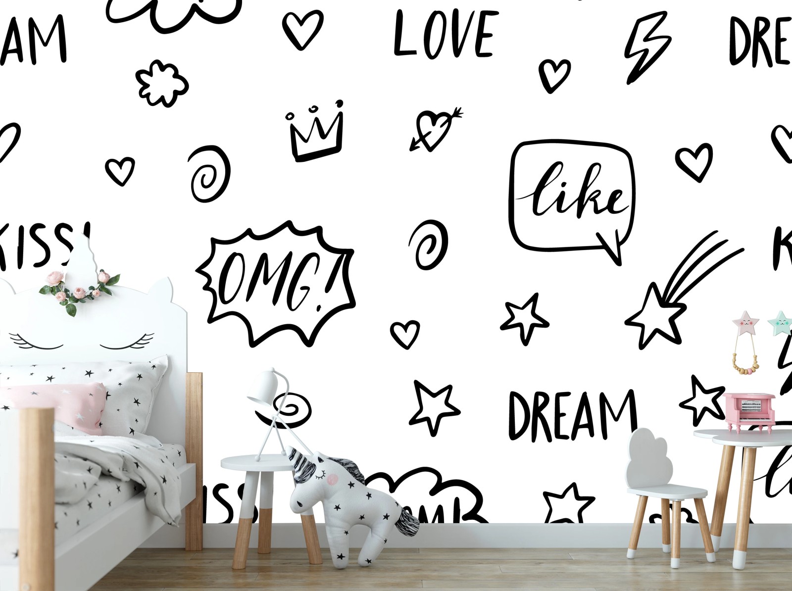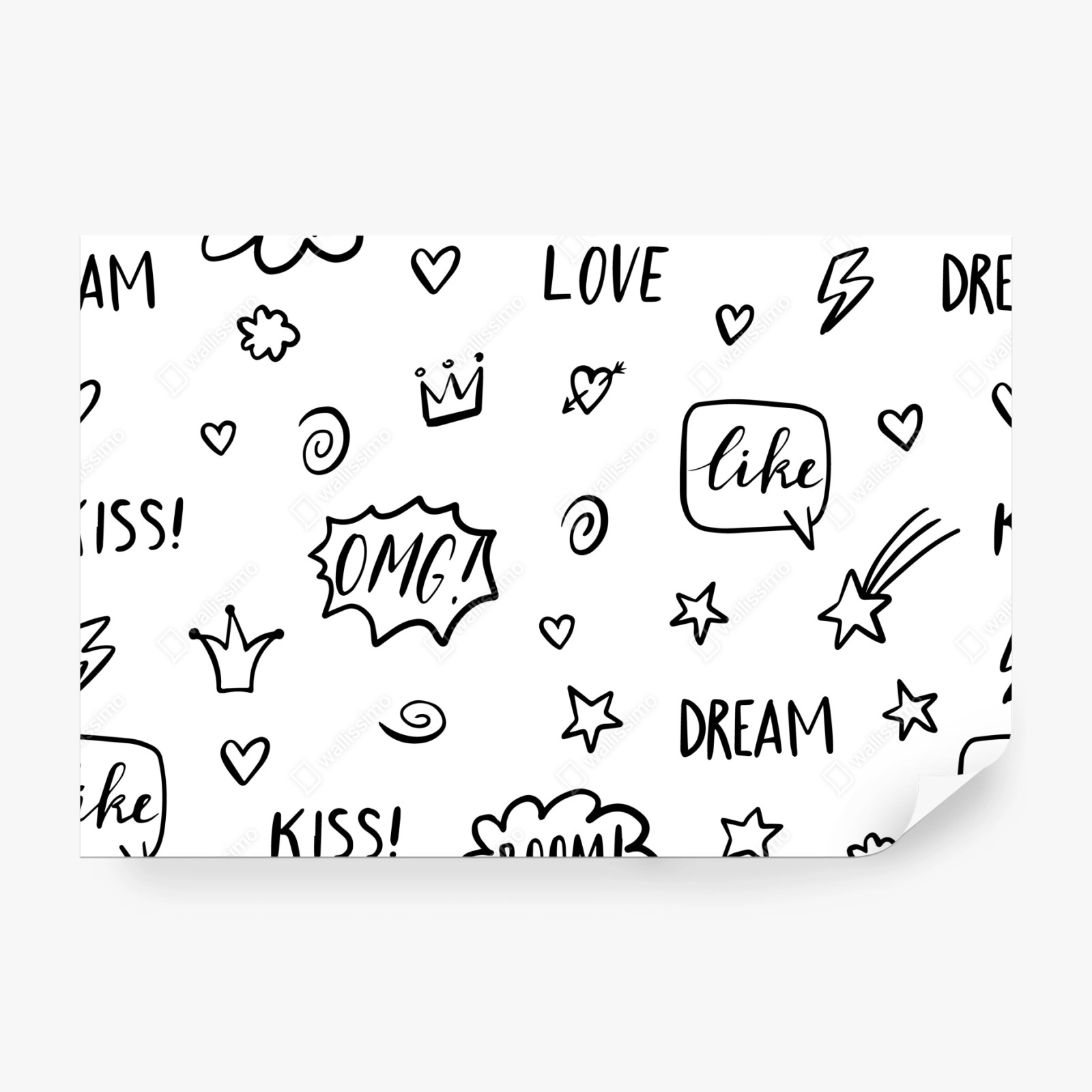 Fototapete Verspieltes doodle-muster mit herzen und sternen