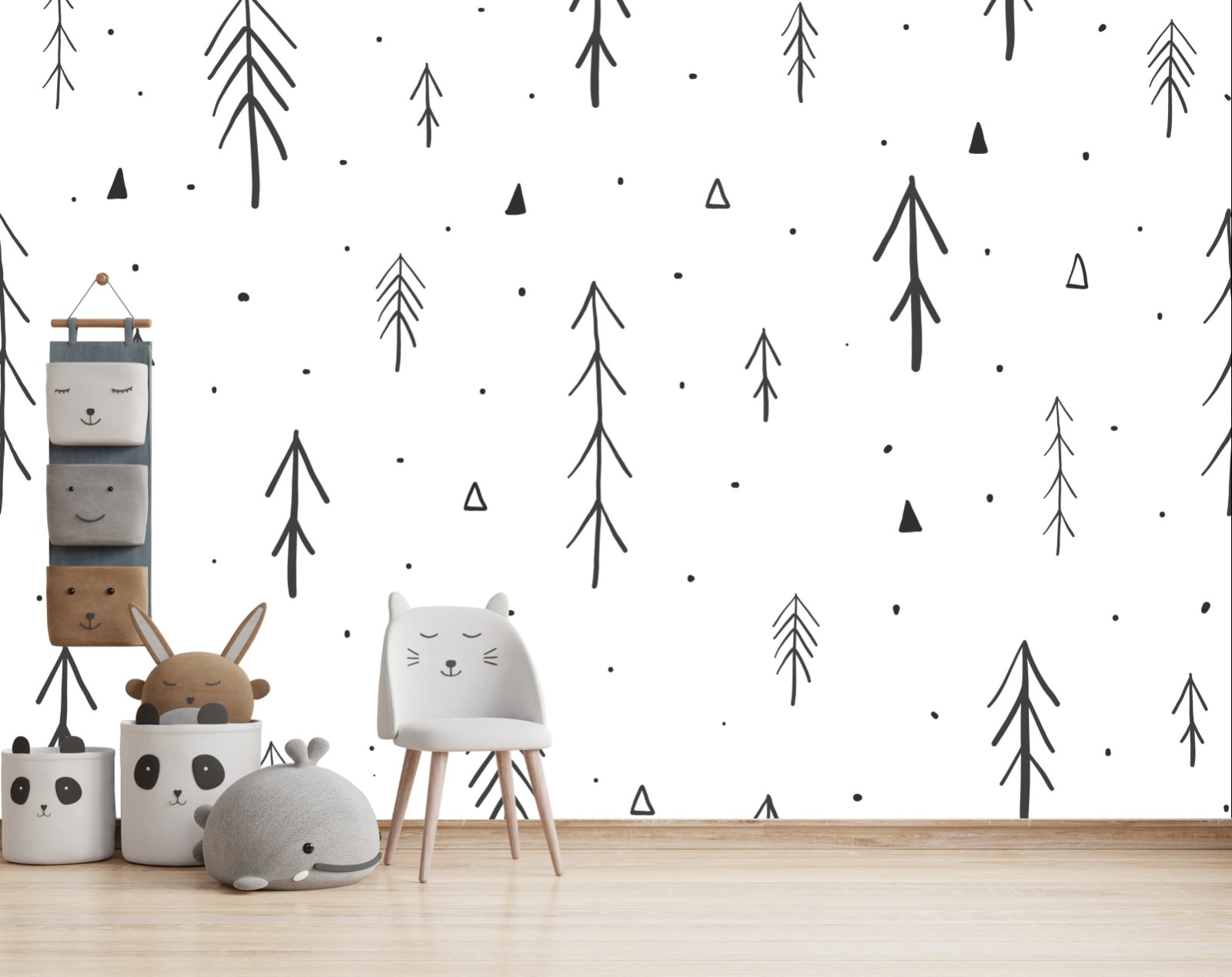 Fototapete Minimalistisches muster mit handgezeichneten bäumen