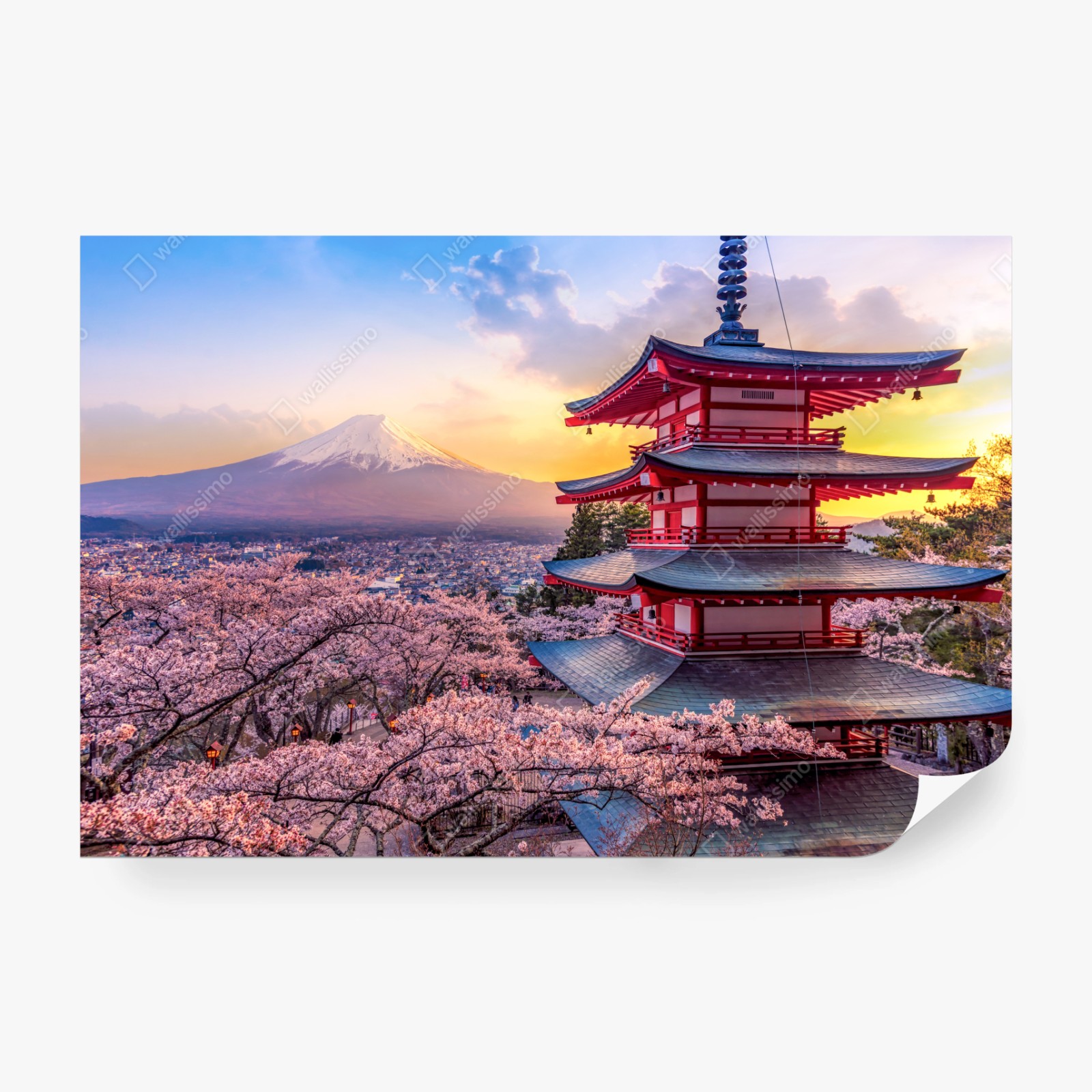 Fototapete Sonnenuntergang über dem Fuji und der Chureito-Pagode
