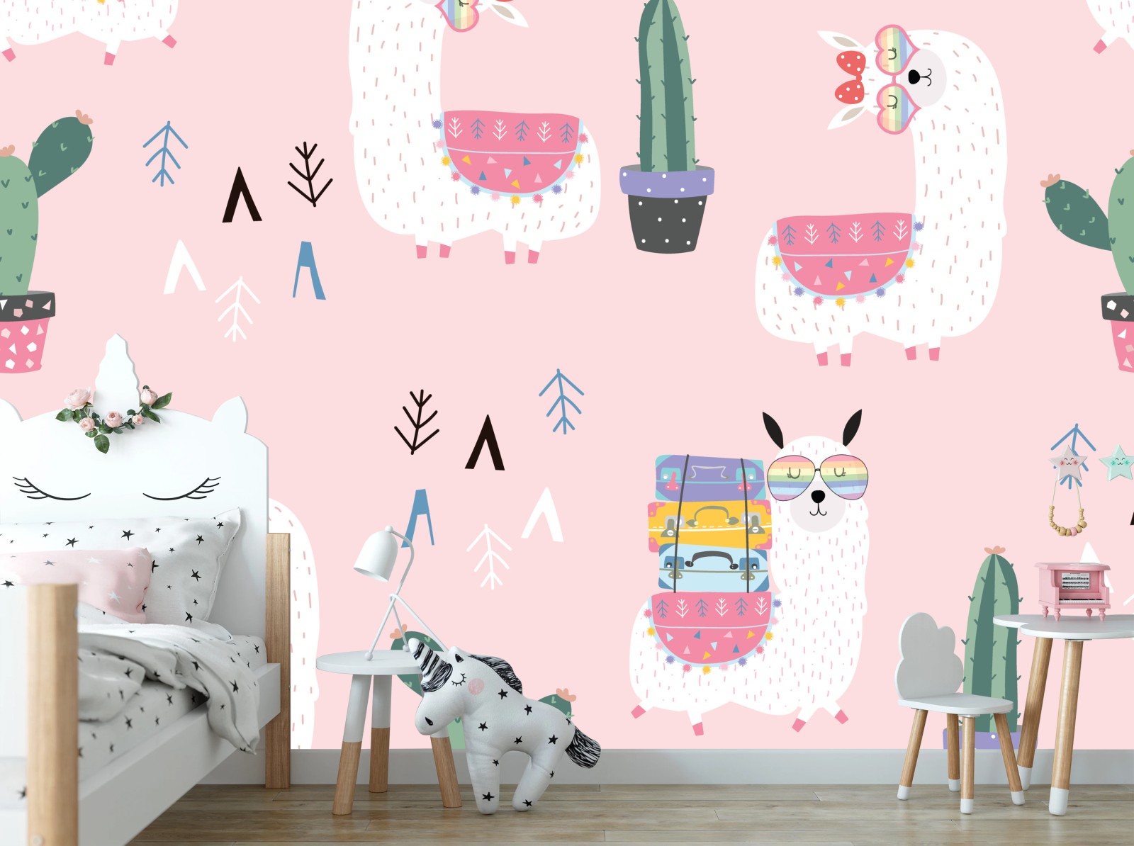 Fototapete Niedliches pastell lama-muster